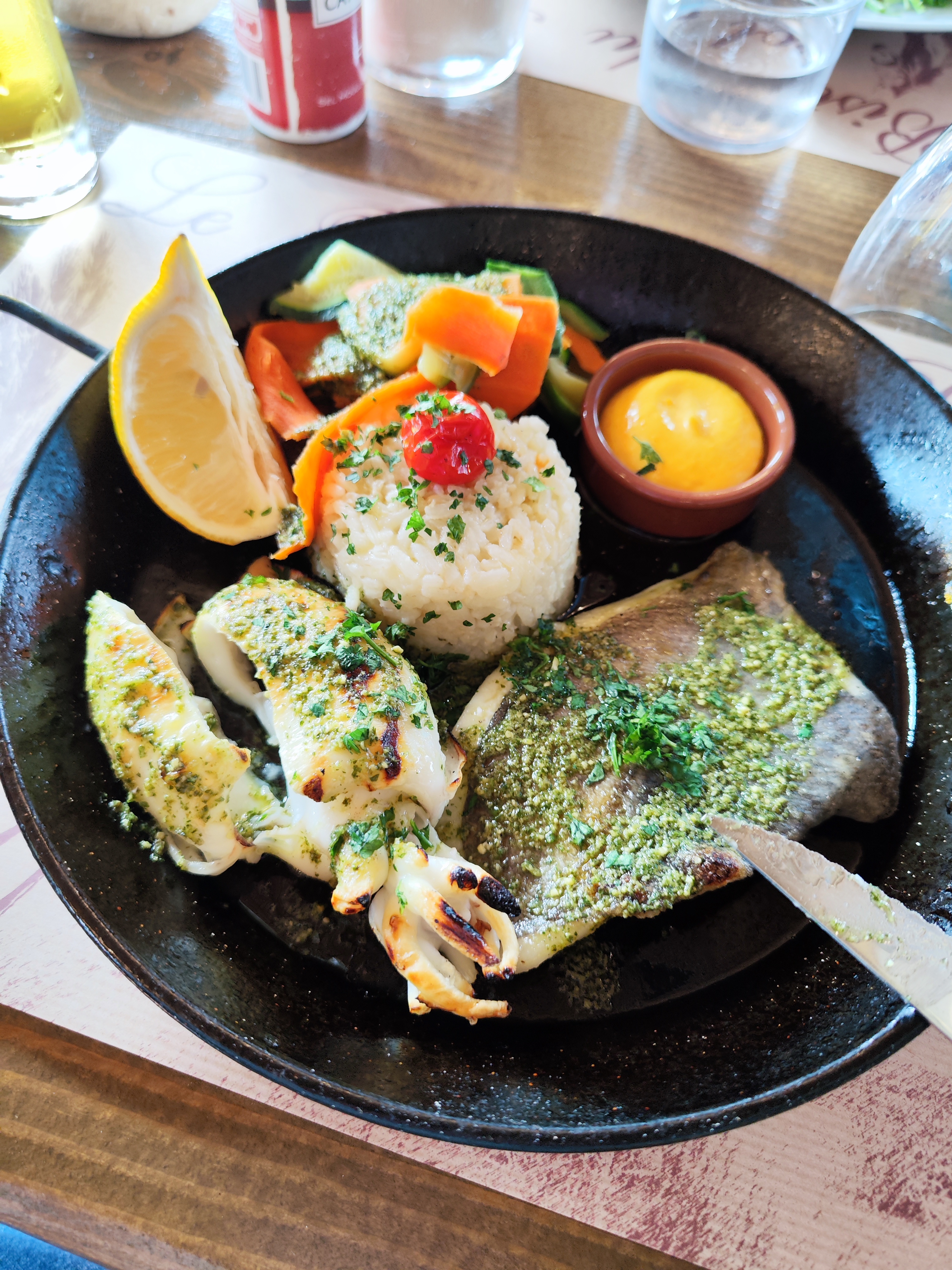 A éviter absolument. Une assiette poisson et poulpe décongelés aux produits secs et caoutchouteux sans parler de l'odeur dégoutante... Tout ça pour 21€ le plat, c'est une honte !!!
