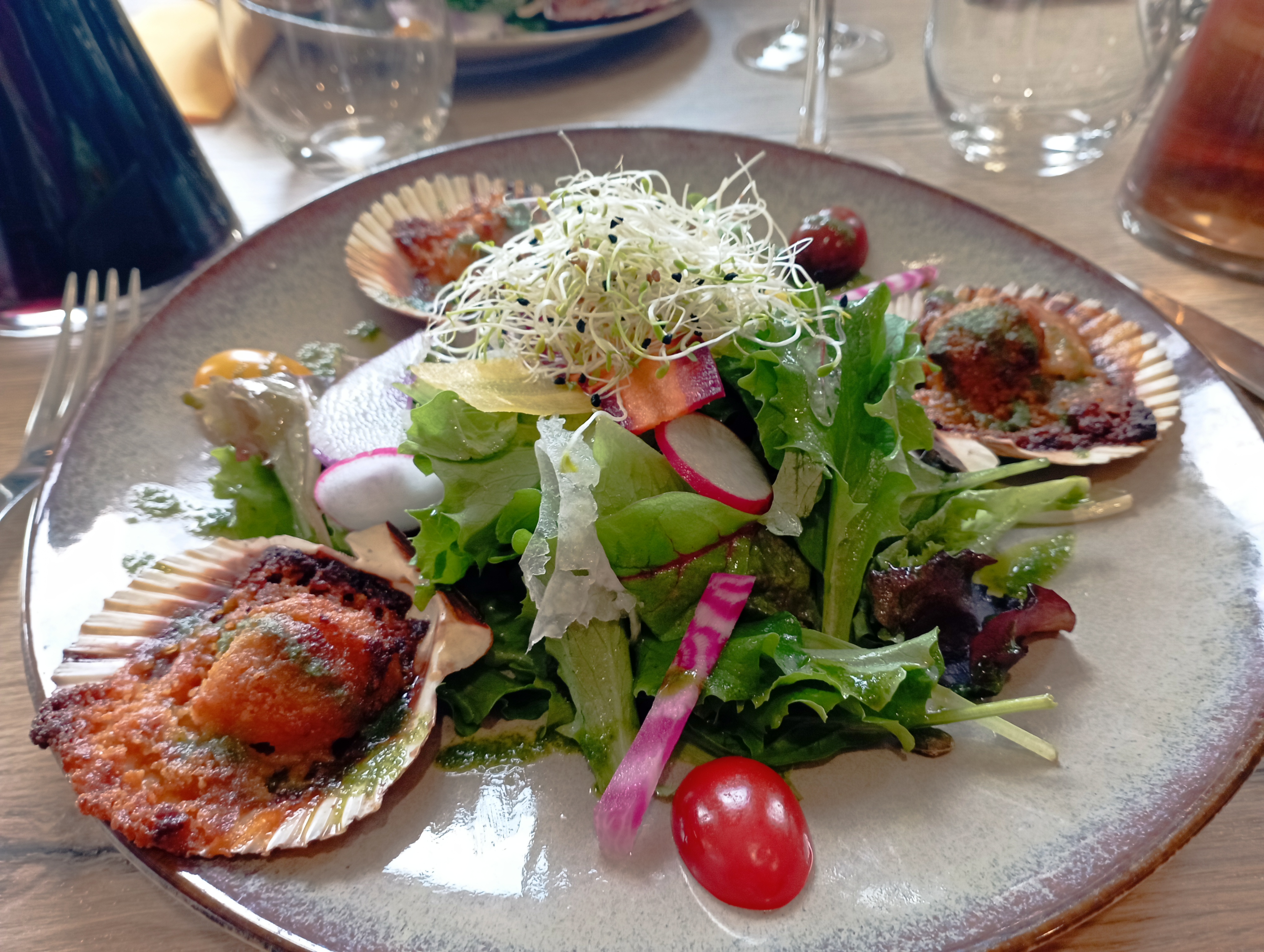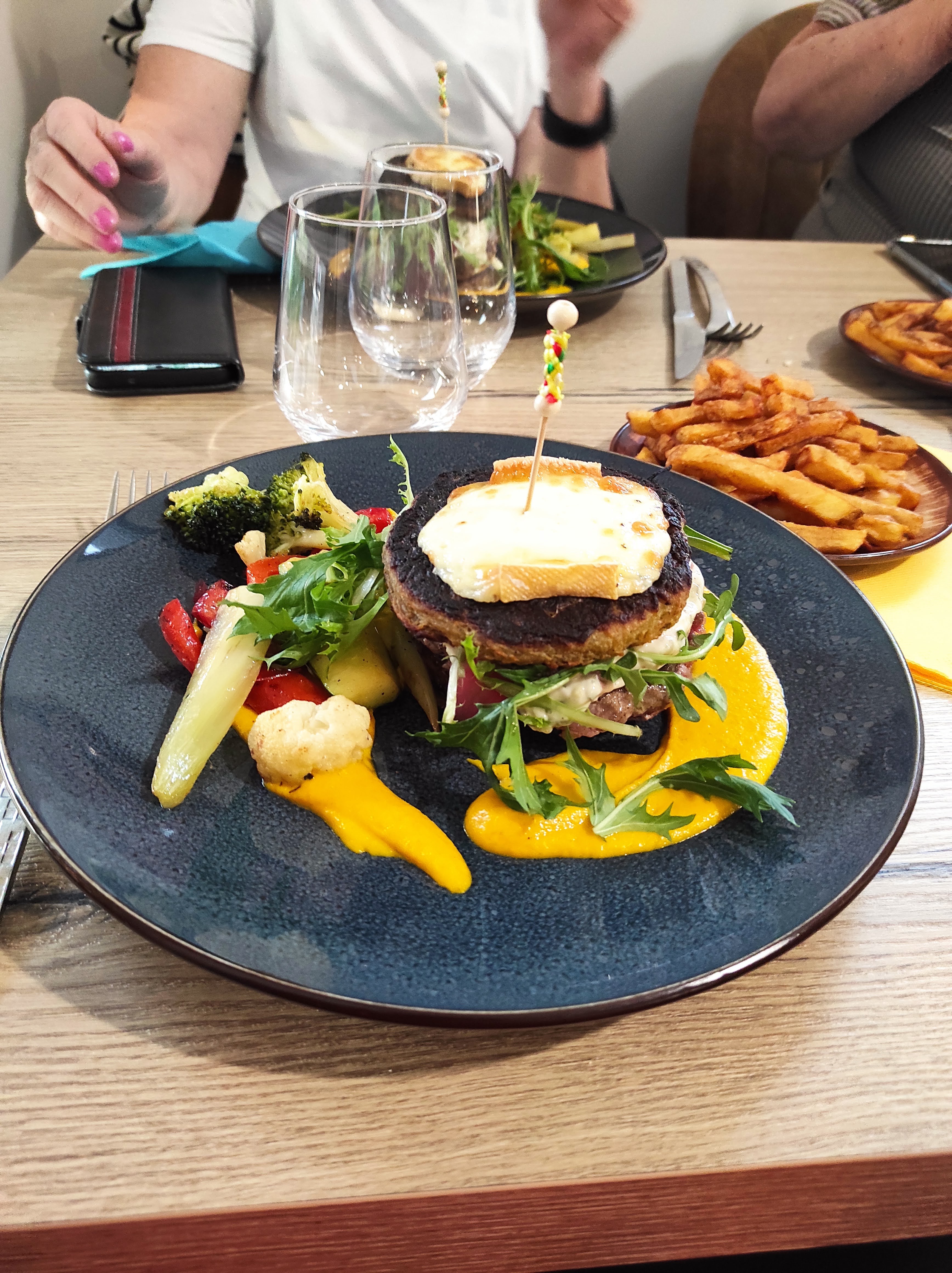 Super repas avec des produits frais et de saison, accueil très sympathique. Il n'y avait pas d'option végétarienne à la carte mais le chef m'a préparé un plat avec plaisir, original (burger végétarien aux falafels, pas lourd du tout) et vraiment très bon !