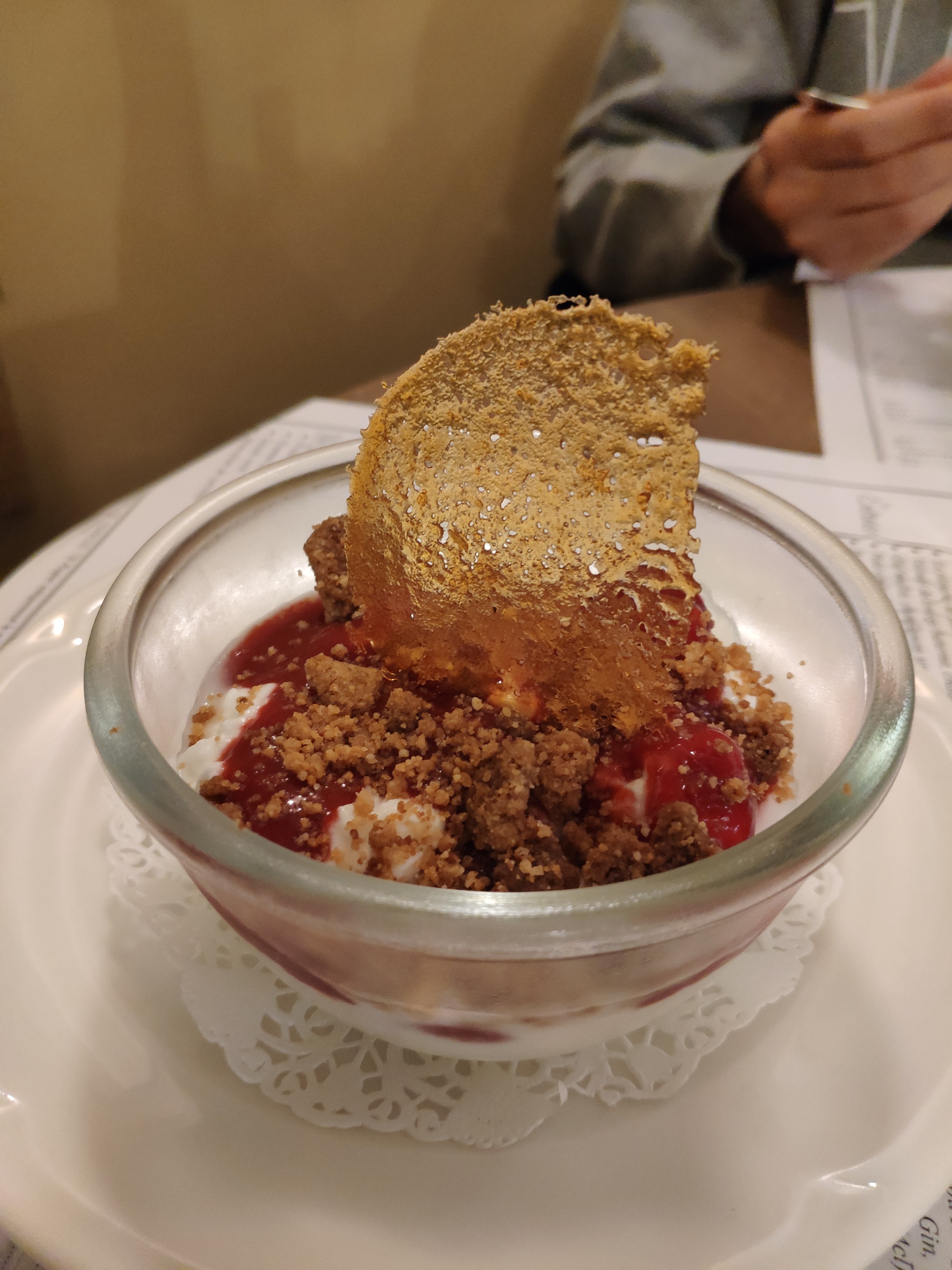 Repas de groupe pas mal, original, surtout esthétique et recettes, mais un peu fade. Il manquait même de sucre dans le dessert. Le vin était servi à la fin des plats. Dommage d'avoir un plat sauce vin jaune qui n'a pas énormement le goût de vin jaune et marié avec un verre de vin rouge en fin de plat.