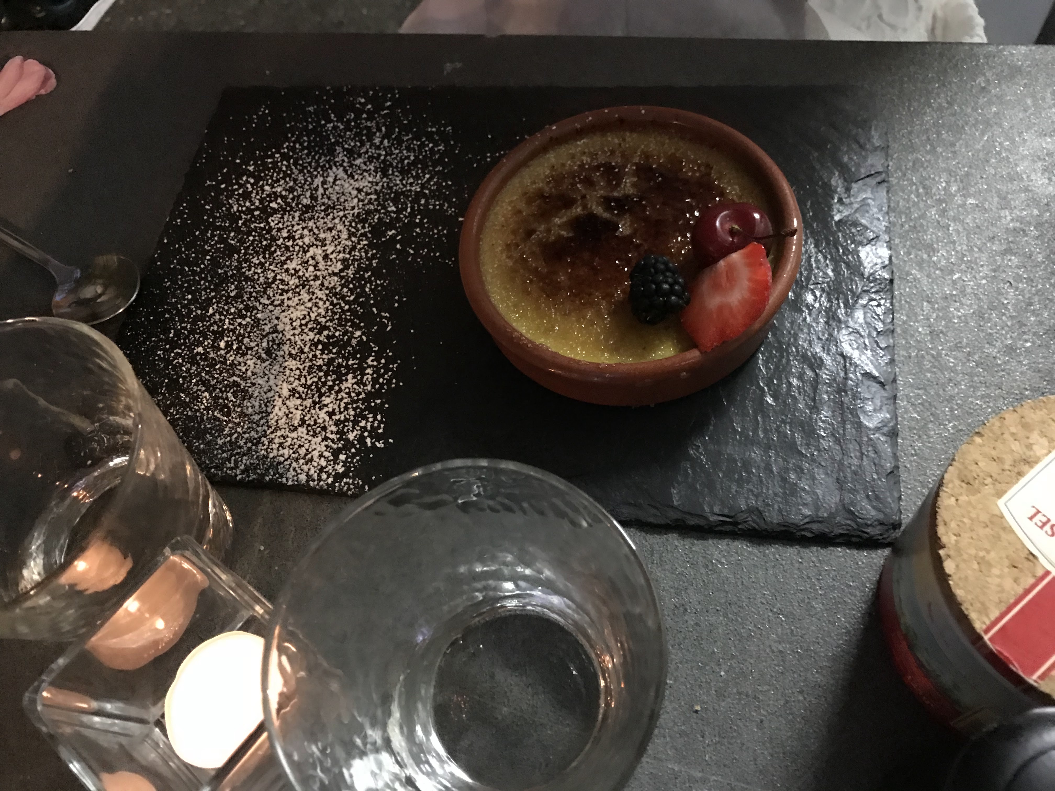Qualité gustative et cuisson de la viande et du poisson parfaites . Je déconseille totalement ce restaurant aux intolérants au gluten , cette particularité ayant l’air d’agacer le restaurateur quand je lui ai demandé quelques olives ou des cacahouètes pour accompagner ma coupe de champagne ( nous étions 4 ) en lieu et place des croûtons et biscuits proposés . Le restaurateur s’est exclamé « mais c’est sans gluten , en regardant le plateau apéritif « ! Et il n’avait ni olives ni cacahouètes à me proposer . Quant aux desserts , il n’y en avait aucun qui ne contienne pas de blé et aucune alternative n’a été proposée . Visiblement c’était « à prendre ou à laisser « et cette attitude a été très étonnante surtout qu’à la réservation j’avais mentionné qu’il y aurait une personne sans gluten .