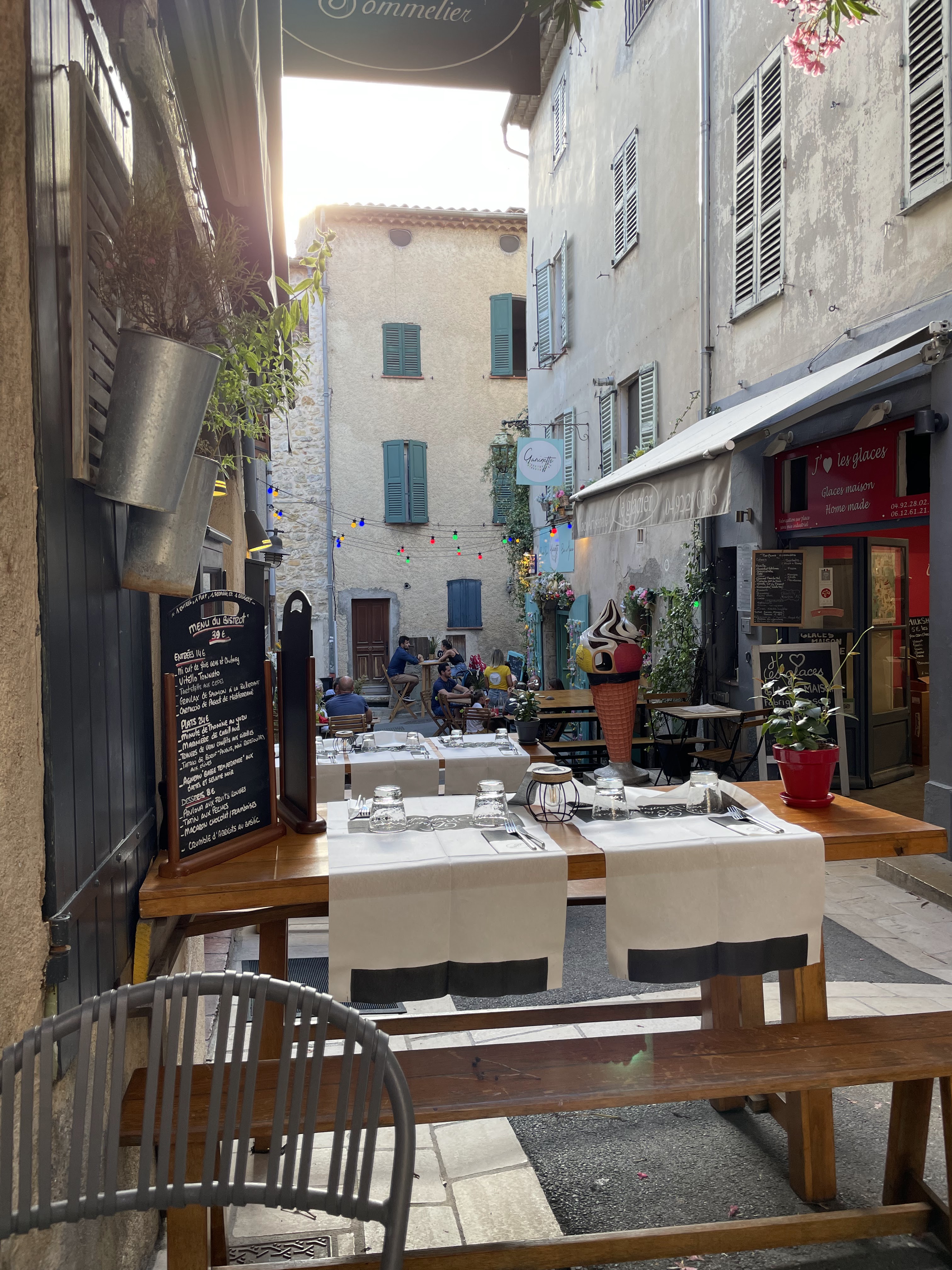 Nous avons absolument adoré notre expérience culinaire dans ce restaurant. Délicieuse cuisine française classique dans une magnifique ruelle de la belle ville de Valbonne. Nous avons eu le canard qui était superbe et le steak au beurre du Café de Paris. Cuit à la perfection. Nous avons adoré la tarte tartin aux figues !