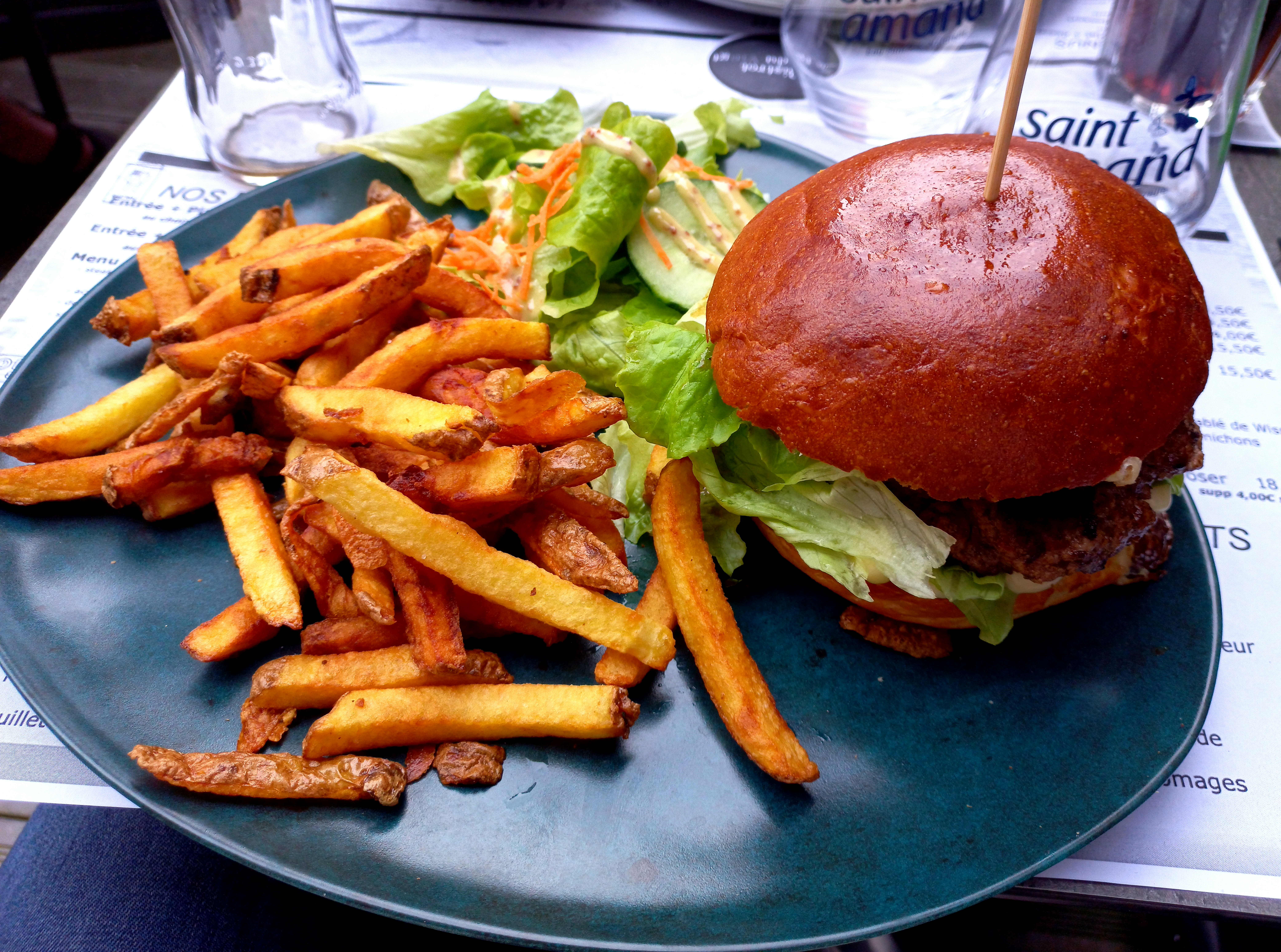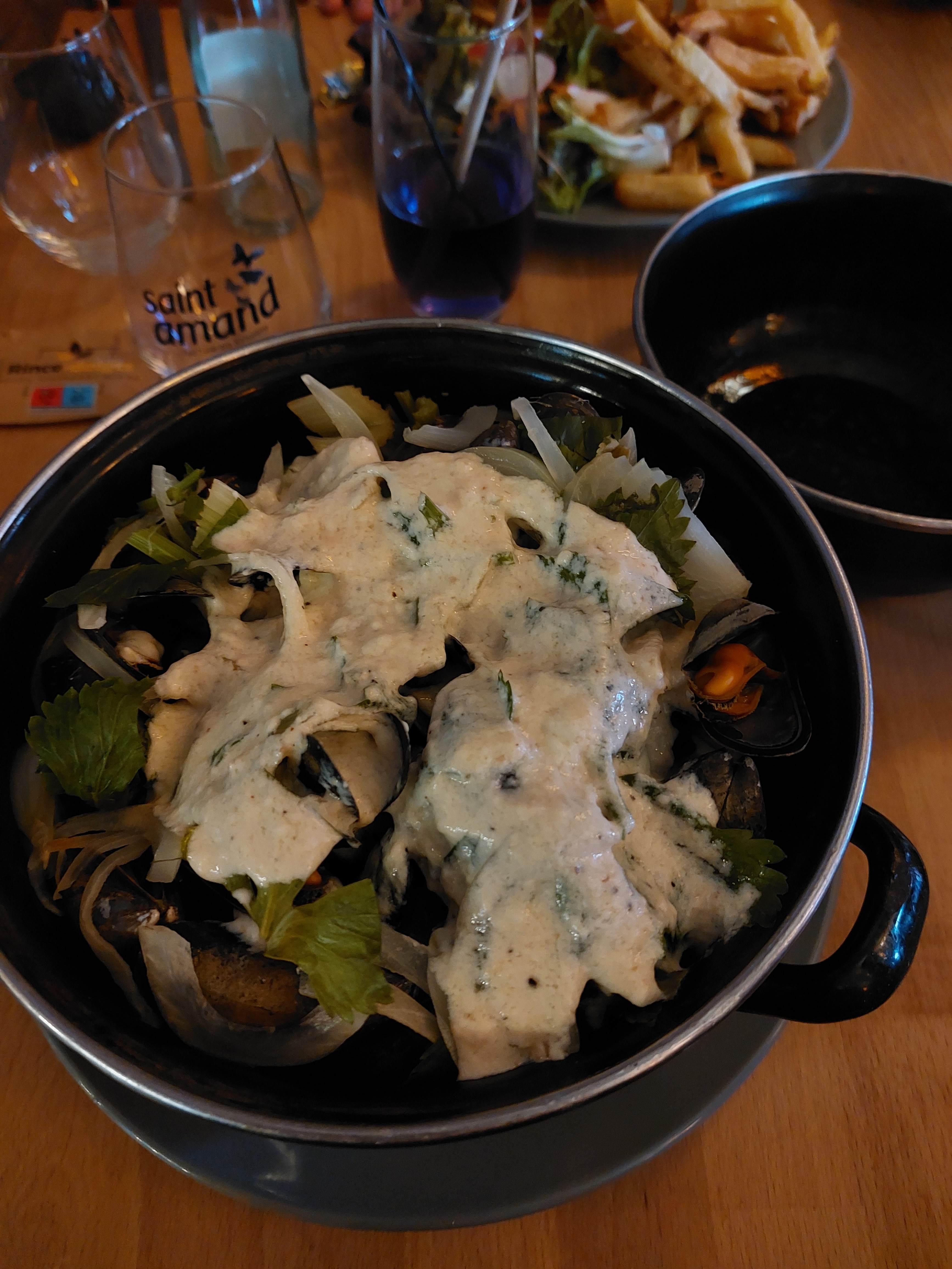 Moules farineuses dont la moitié des coquilles étaient vides, moules crème sans crème et sans vin blanc. J ai retourne la casserole......le hamburger ne valait pas mieux......décevant....je ne recommande pas....
