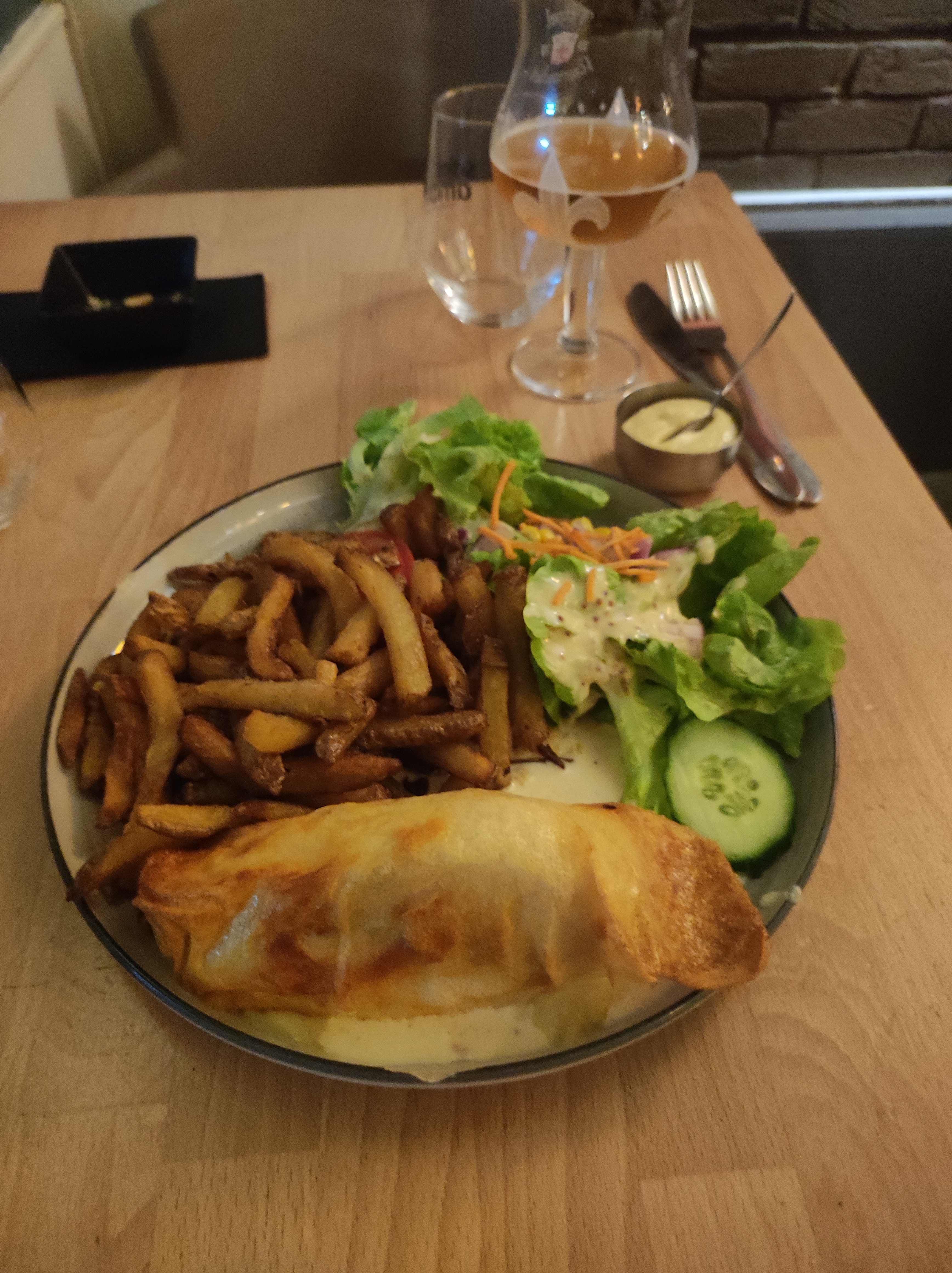 Prix correct, cadre agréable en plein centre ville de Boulogne sur mer. Personnel féminin prévenant. Mais les plats sont arrivés à peine chaud. (Welsh ,camembert au four, bavette...)c'est dommage 🥴. Belles profiteroles.