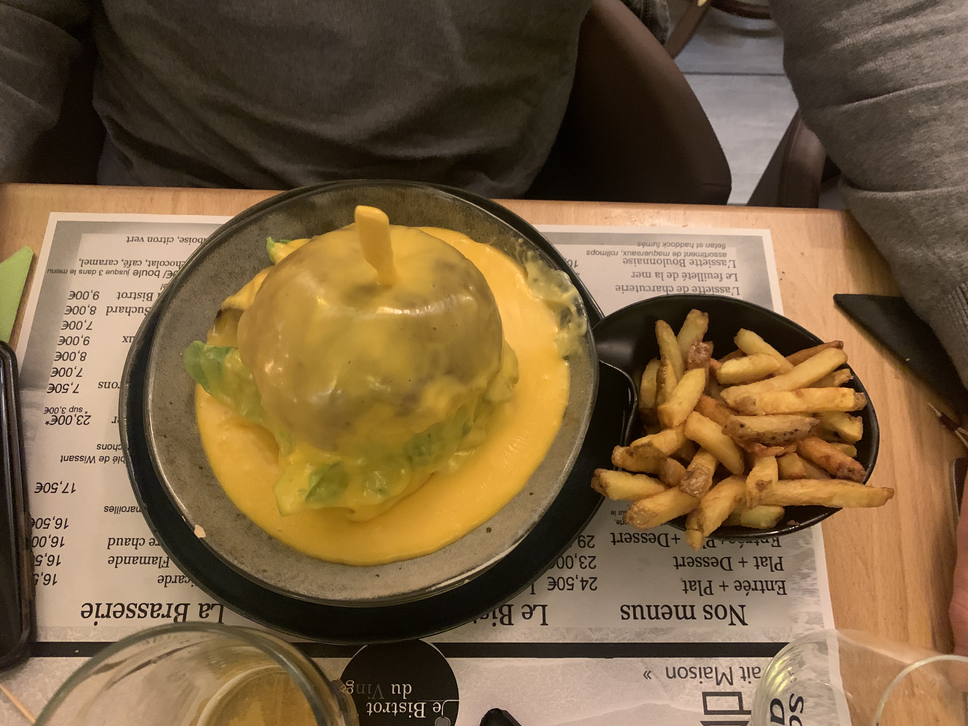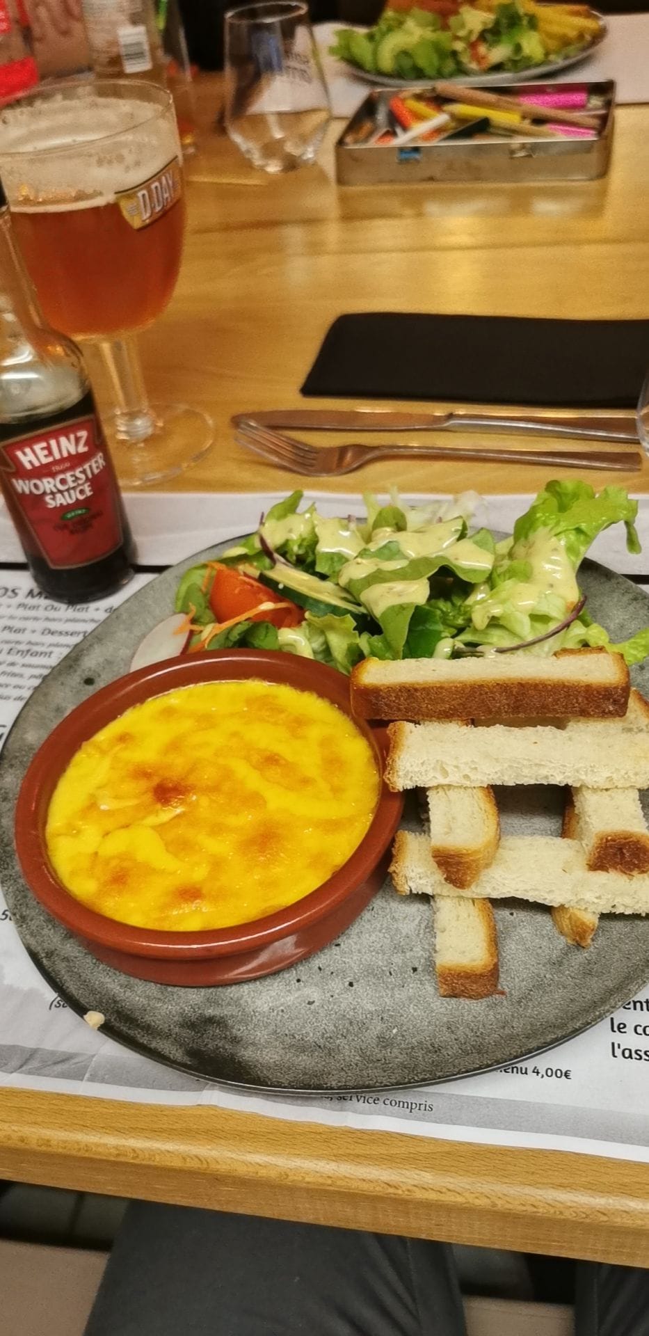 Un EXCELLENT rapport qualité prix. Des produits frais, faits maison, gourmands, bref, tout ce dont on a besoin pour un chouette repas en soirée Le restaurant est situé sur une petite place animée, très agréable quand on sort à la fin du repas de voir la bonne ambiance qui règne dans les proches bars d’ambiance. Une serveuse très aimable et à l’écoute. On s’est vraiment très bien senti dans l’établissement et avons passé un agréable moment. Je recommande +++