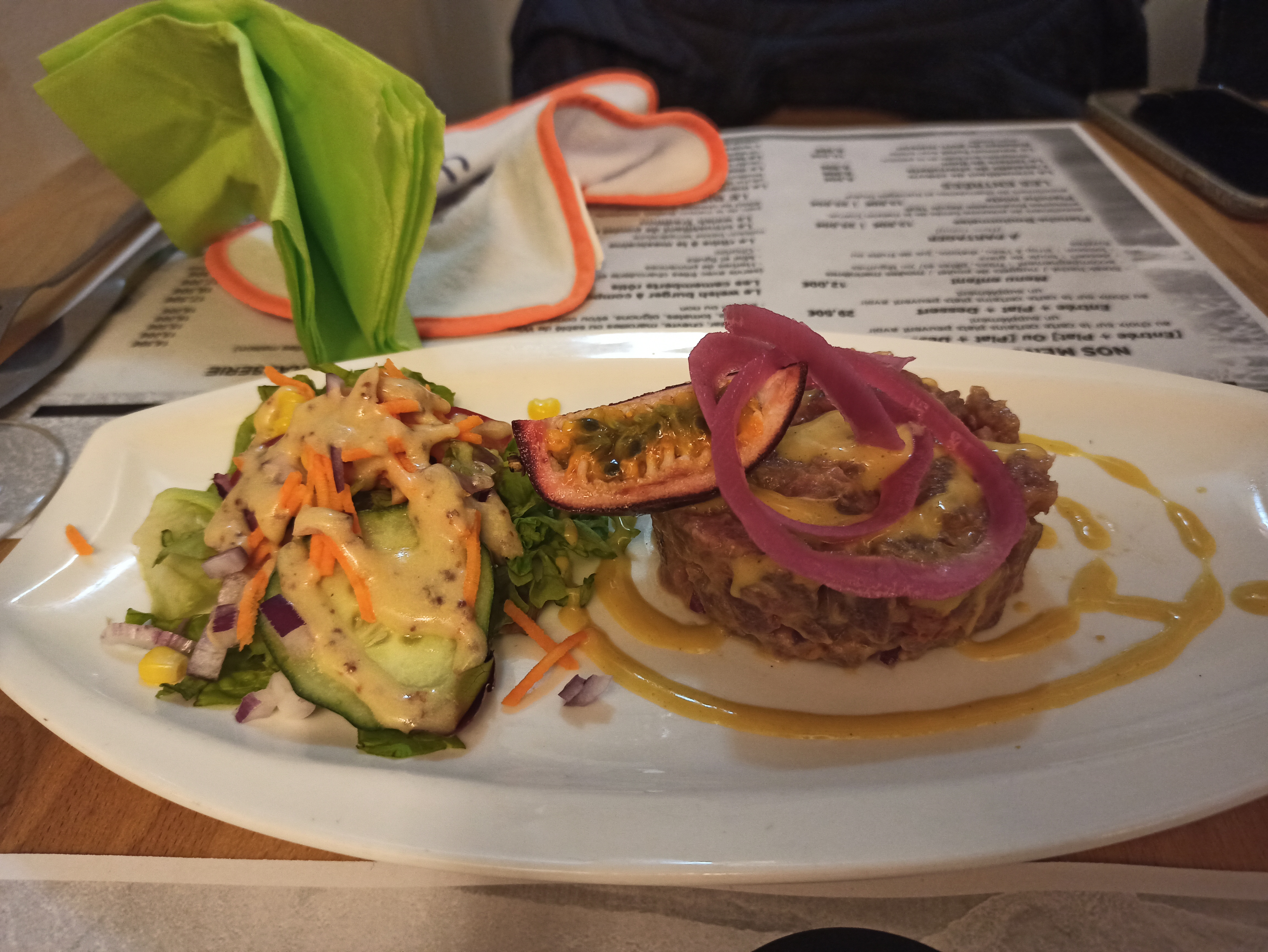 Cadre et carte sympathique, tarif raisonnable et personnel agréable, tous les éléments sont présents afin de passer un bon moment. Nous y avons bien mangé et sommes reparti satisfait de ce dîner, toutefois certains plats mériteraient un peu plus d’attention. À recommander !
