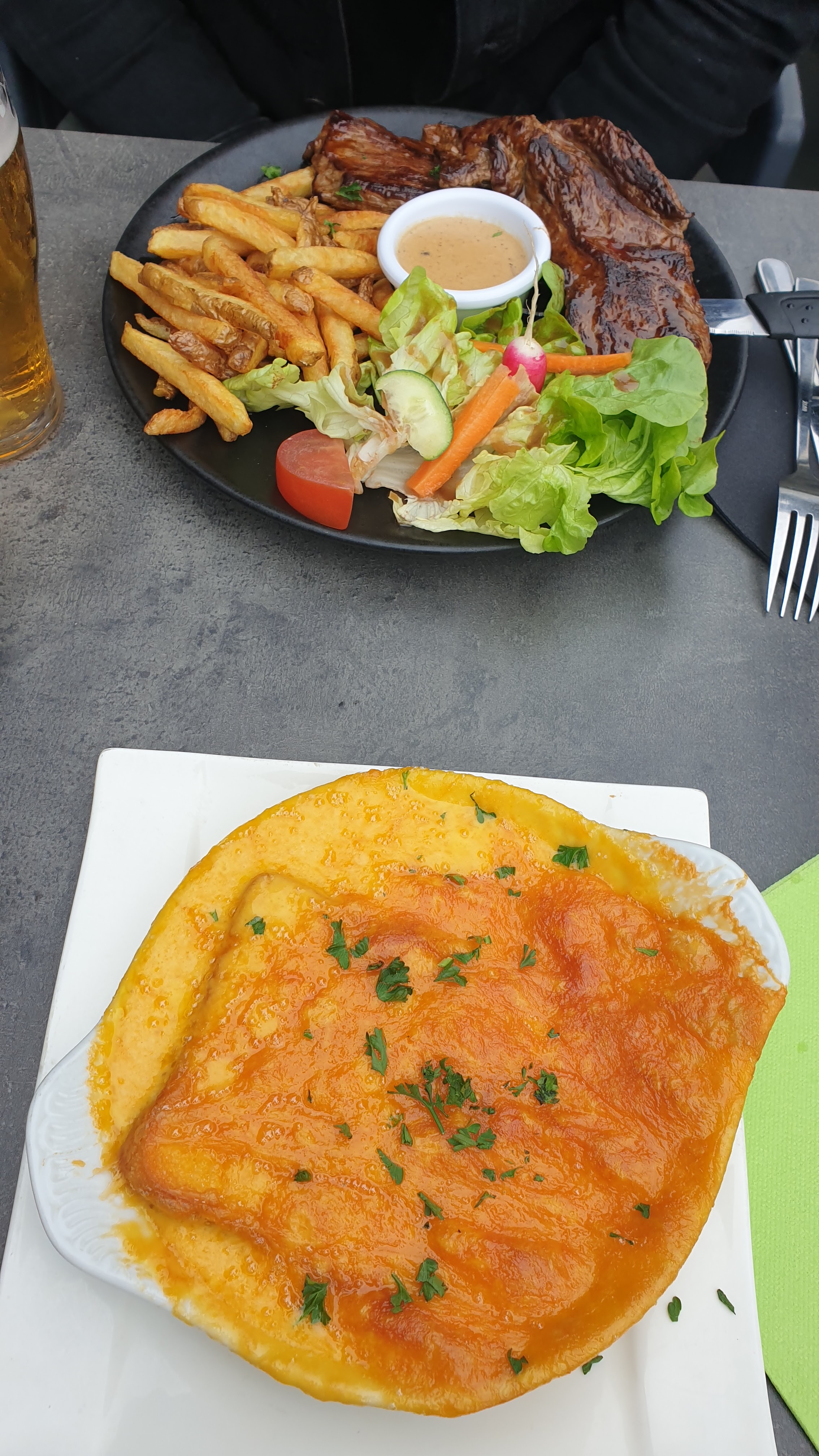 Moules marinières très bonnes et en belle quantité, pour ce qui est des bavettes et de la carbonade flamande les assiettes manquaient un peu de quantité mais c'était malgré tout très bon ! Les frites bien grillés étaient bonnes mais avaient peut-être un petit goût de trop peu 😅 Je pense que c'est le bon résumé, très bon mais un poil pas assez dans les assiettes 🙂