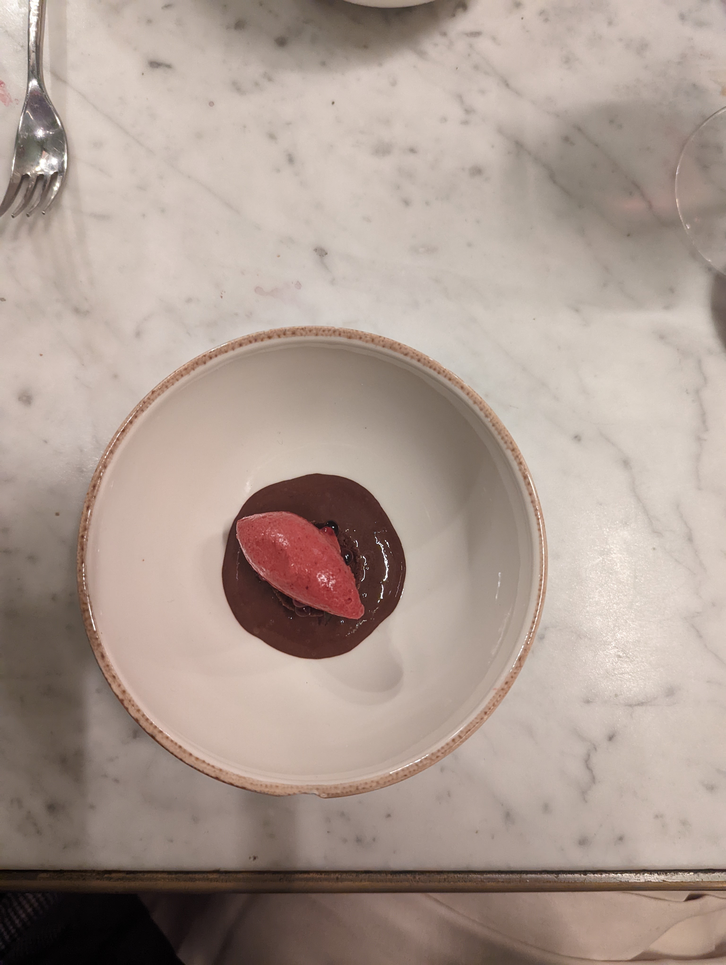L'une des meilleures expériences culinaires depuis longtemps. Le chef recherche des sensations très précises pour le palais ; certains plats sont incroyablement subtils et précis, d'autres audacieux et époustouflants. Le service est très chaleureux et honnête, les vins proposés sont pertinents et d'un bon rapport qualité/prix. Je ne sais pas comment ils font pour délivrer une telle qualité en gardant en moyenne 10 kilos par plat, c'est bien moins qu'un bistrot moyen d'une zone commerciale de Paris. Quiconque remet en question les prix n’a aucune idée de ce qu’il faut pour gérer un restaurant. Je pense qu'ils obtiendront la première étoile cette année environ