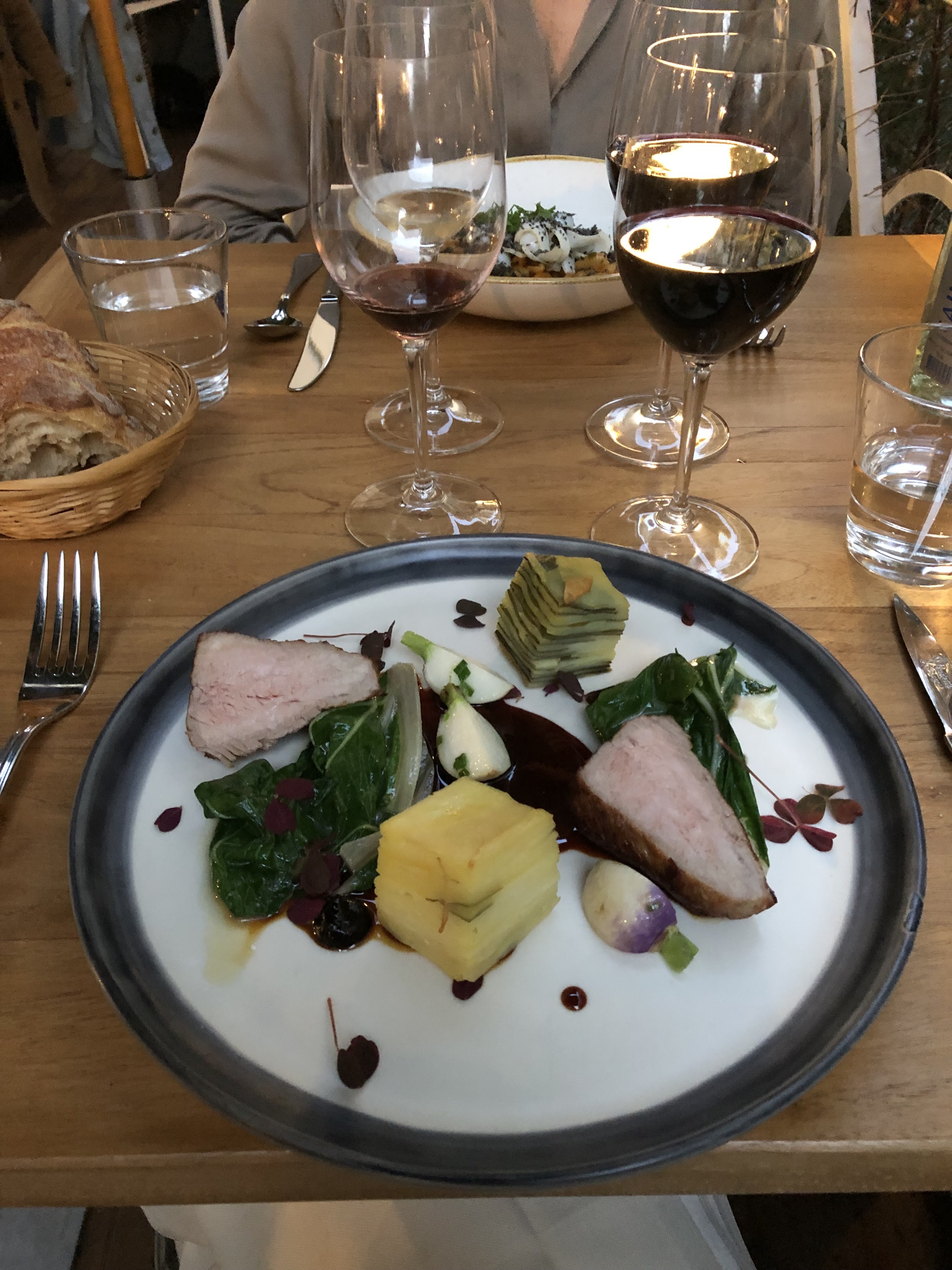 Restaurant mignon avec un bon service. Concernant les plats j’ai été déçu de l’ensemble. L’entrée avec des tomates cœurs de bœuf était décevante. Bon je me suis dit que c’était une question de goût donc j’ai pas été plus gêné que ça pour le début du repas. Le plat d’agneau était bon sans être incroyable. L’artichaut un peu gros et un peu posé ici comme si on ne savait pas quoi faire d’autre… dommage… enfin arrive le désert je me décide à partir sur le flan au potimarron eh ben quelle déception ! C’était vraiment un mauvais moment. Je comprends qu’on essaye de faire des desserts originaux avec très peu de sucre mais cela en devient presque déplaisant au palet. C’est plat sans âme sans grande saveur pour relever le tout, un peu de croquant certes mais le reste fait grise mine. On a un malheureux baba à côté qui se défend comme il peut. Heureusement j’ai pu goûter les profiteroles qui étaient très légers et agréables ! Bien maîtrisé ! Je comprends la volonté d’être originale et s’éloigner des sentiers battus mais parfois ça devient un peu trop compliqué et cela devient un non sens complet. J’ai vu d’autres photos de précédentes cartes et honnêtement cela donne plus envie dommage je suis venu sûrement au mauvais moment. Globalement déçu et je trouve le restaurant cher de 10-15€ de trop à mon avis…