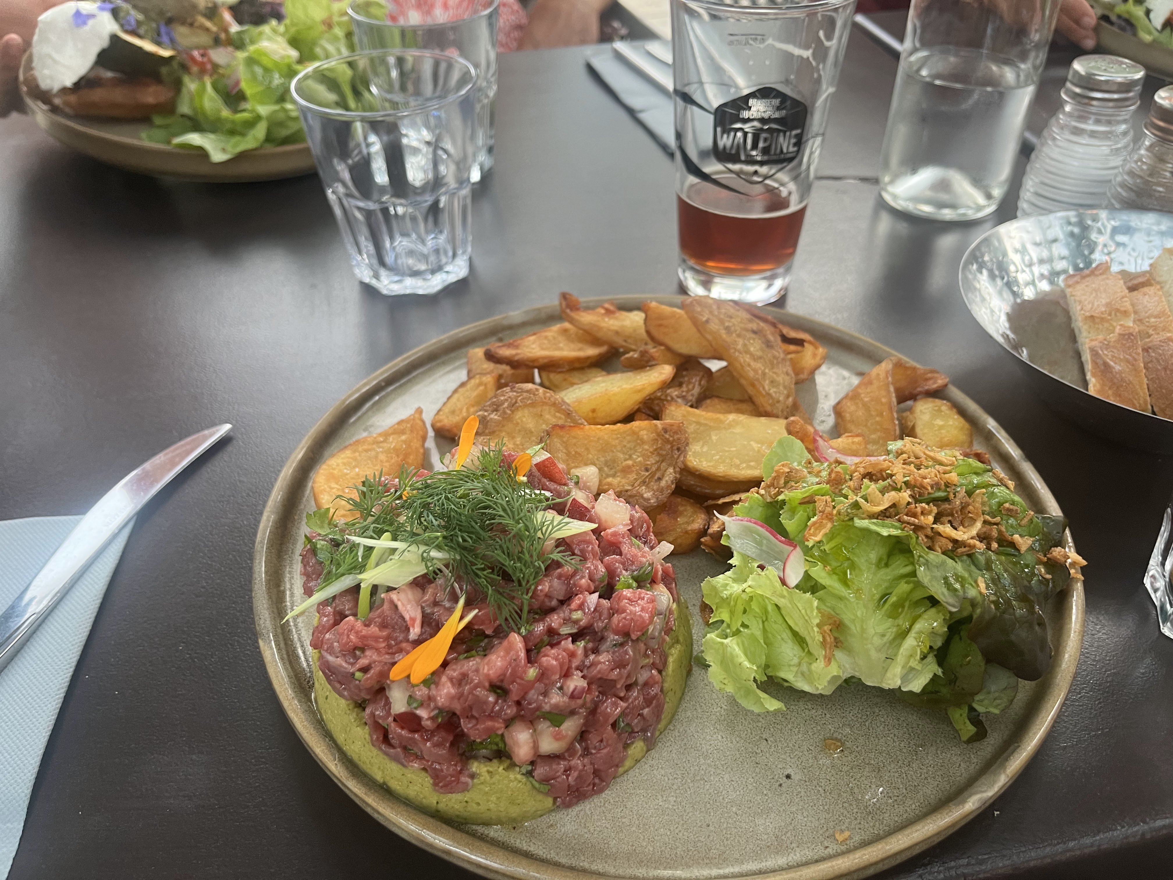 Nous avons toutes les deux pris un burger avec une bière locale, c’était délicieux ! La terrasse est très plaisante. Il faudrait juste sensibiliser tout le personnel concernant les allergies alimentaires. Mon amie en a à un stade vraiment sévère, et cela a été pris très à la légère par l’un des serveurs. Merci au deuxième qui a pris cela au sérieux et qui a fait le nécessaire