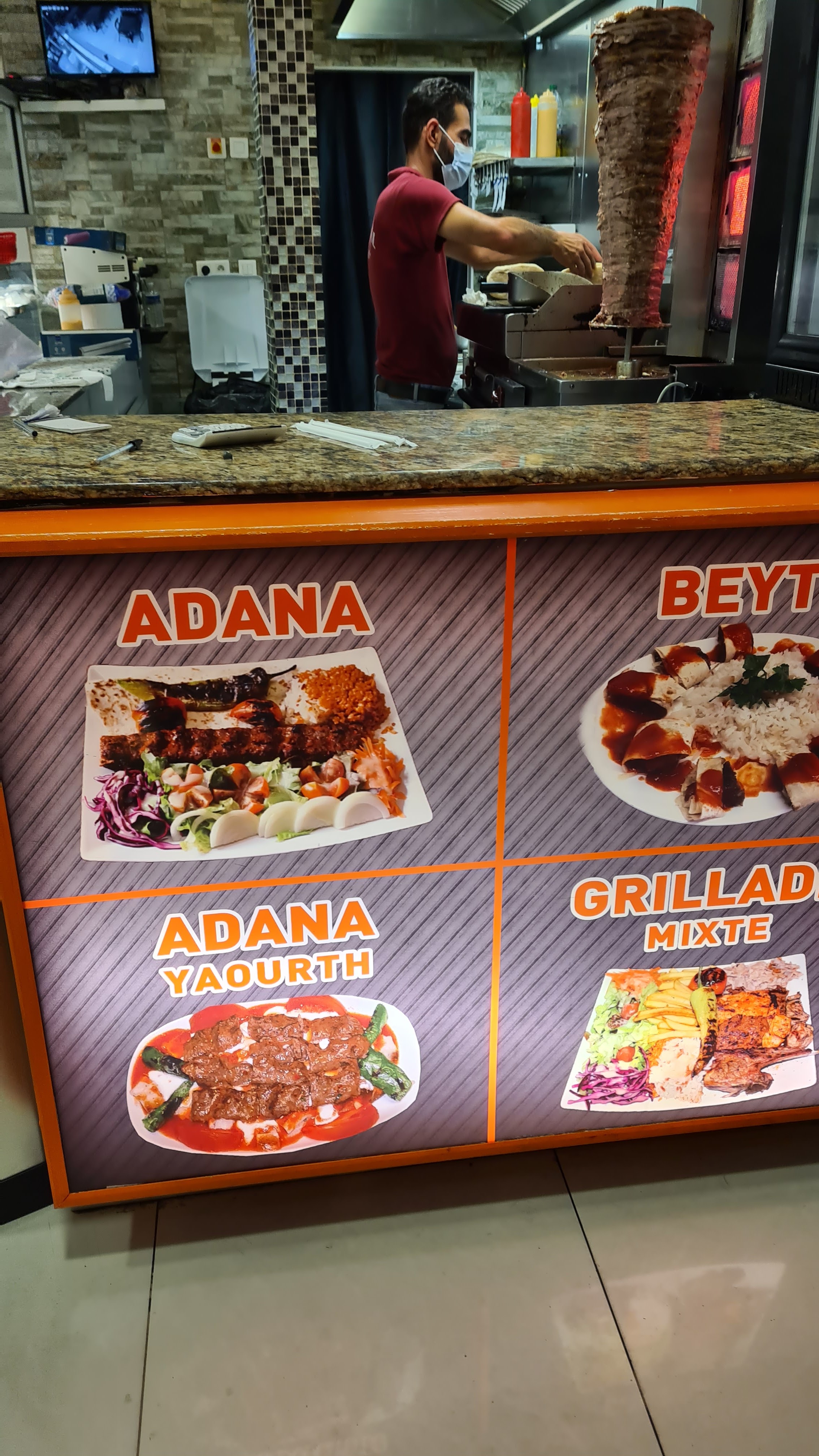 Nous sommes allés à cet endroit vers 20h30, ce qui, selon la plupart des standards de restauration rapide, n'est pas du tout tard, mais certaines choses étaient déjà terminées, comme s'il n'y avait pas d'Adana, pas de poulet. Le personnel faisait juste les choses sans ce sens supplémentaire de l'hospitalité, l'endroit est trop mauvais pour manger sur place, nous avons donc pris des plats à emporter et avons dû attendre une demi-heure. Les assiettes sont chères à mon avis compte tenu de la taille des portions.