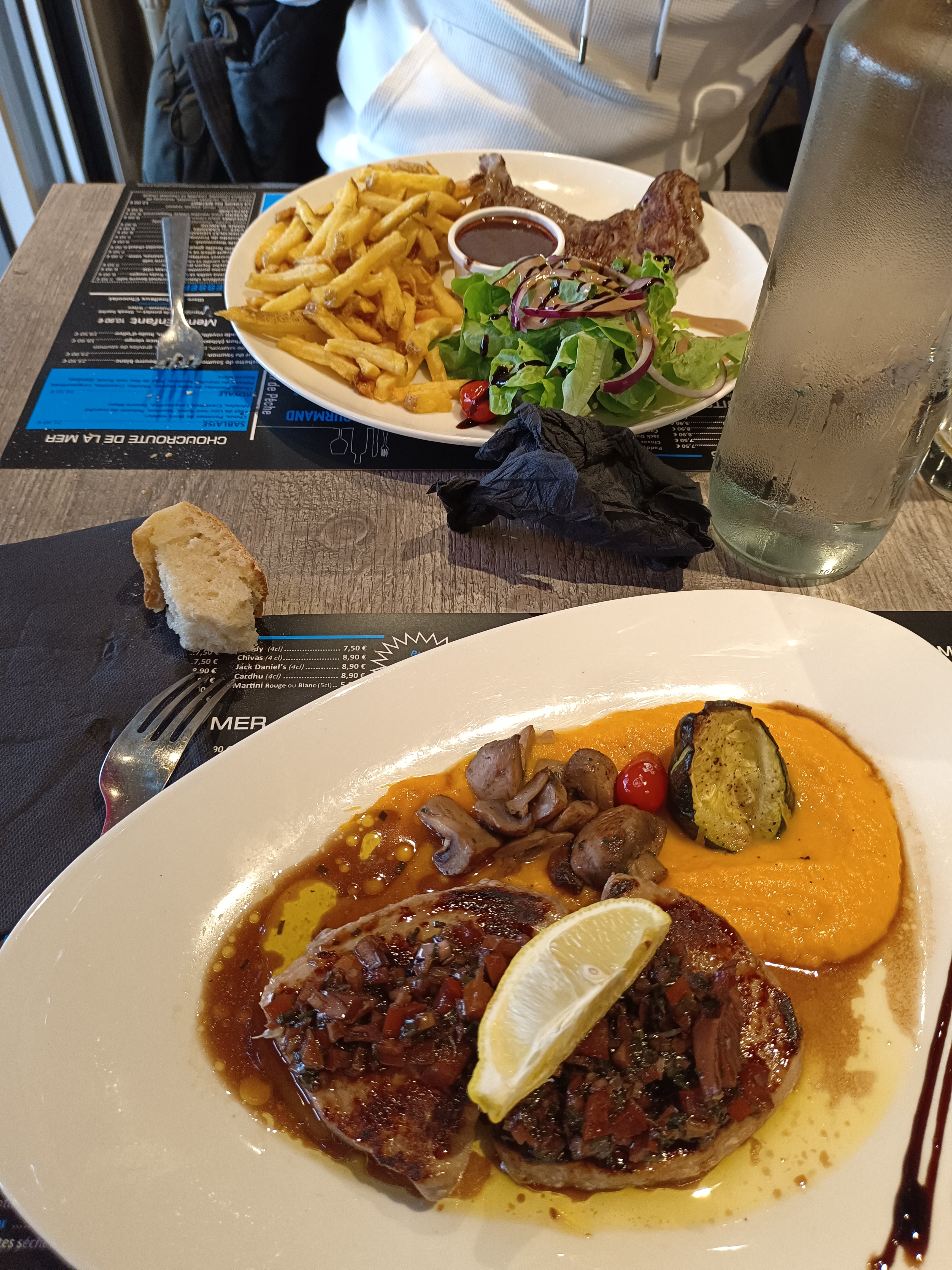 Ce fut un bon repas pour un prix raisonnable. Les seuls points négatif que j'aurais à donner serait les frites qui n'était pas spécialement bonne. Des frites fraîche aurait été meilleur fasse à des frites fine surgelé. Des portions légèrement plus grande aurait été également plus appréciable car souvent très petite. La vue était agréable. Attention toutefois le menu n'est plus à jour sur Google il faut compter désormais 24.90€/personne pour le premier menu et 30.90€ pour le deuxième. Je conseil ☺