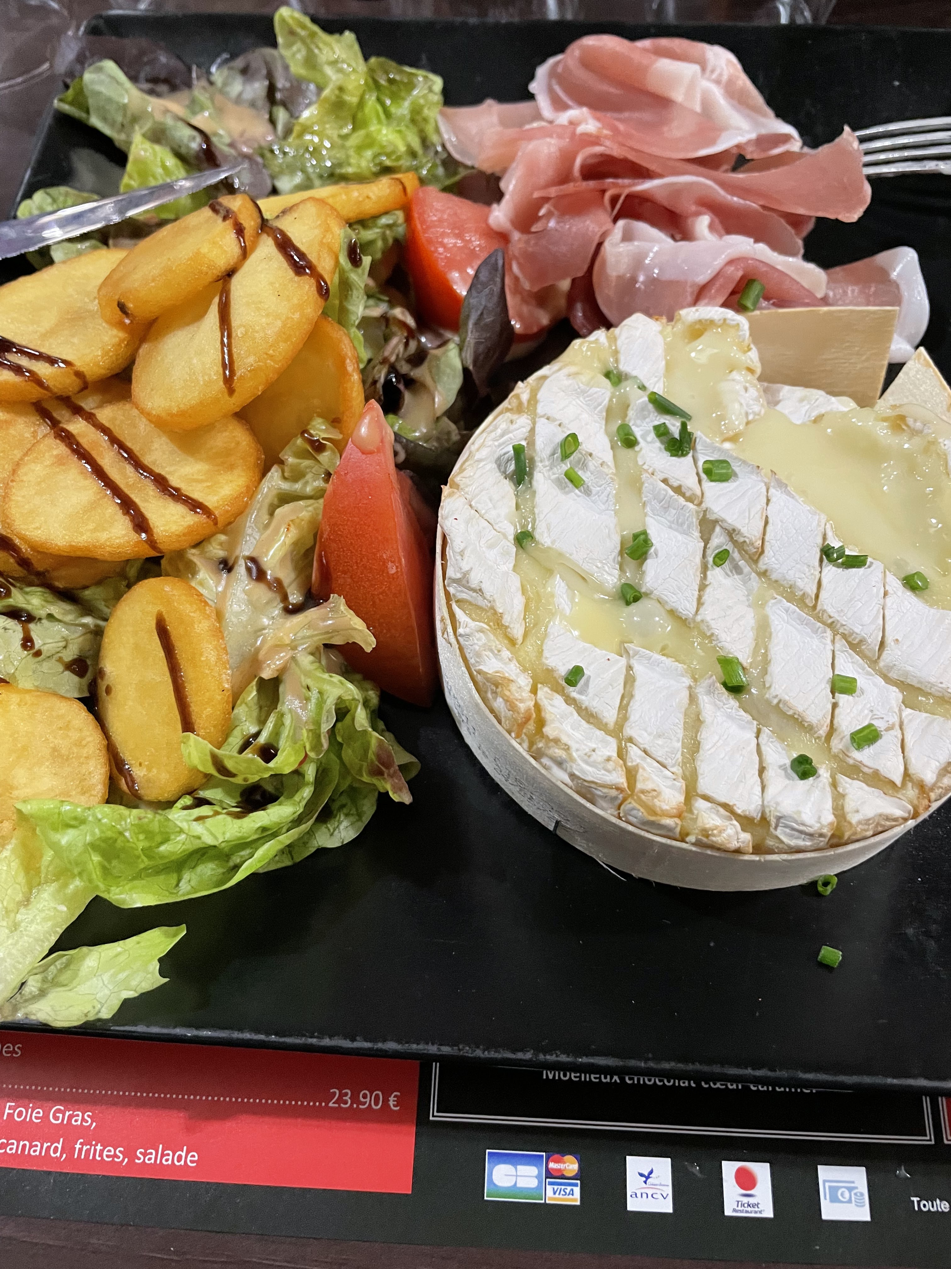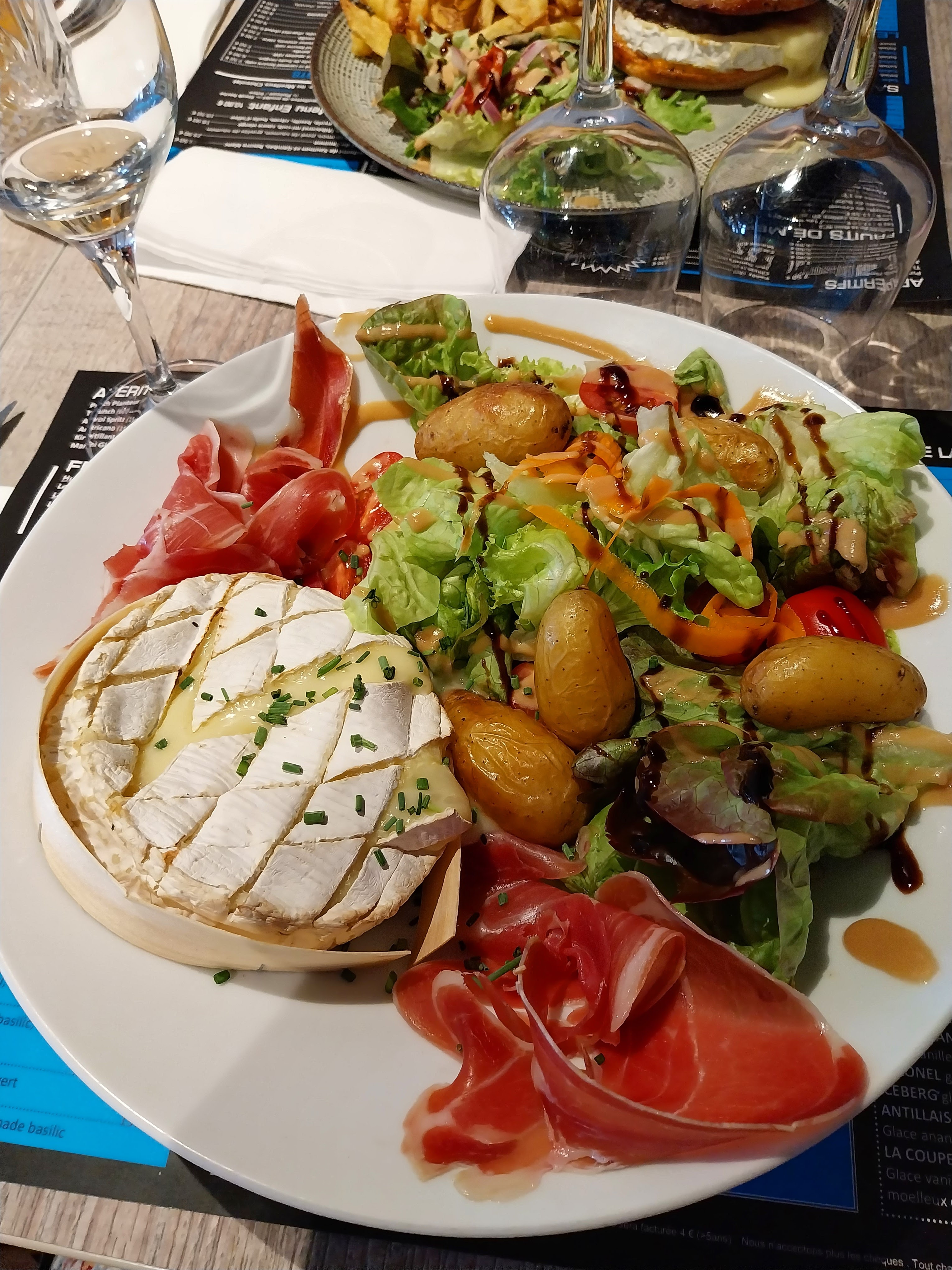 Employés sympathiques mais sans plus. Très excessif pour la qualité des produits, une grande assiette remplie au 3/4 de frites surgelées, un petit bout de viande pas assaisonnée, et une petite salade correcte. L’entrée était pas mal « camembert rôtie et son jambon de pays », le camembert était là mais ils ont du oublier l’autre moitié de ma tranche de jambon… très moyen.
