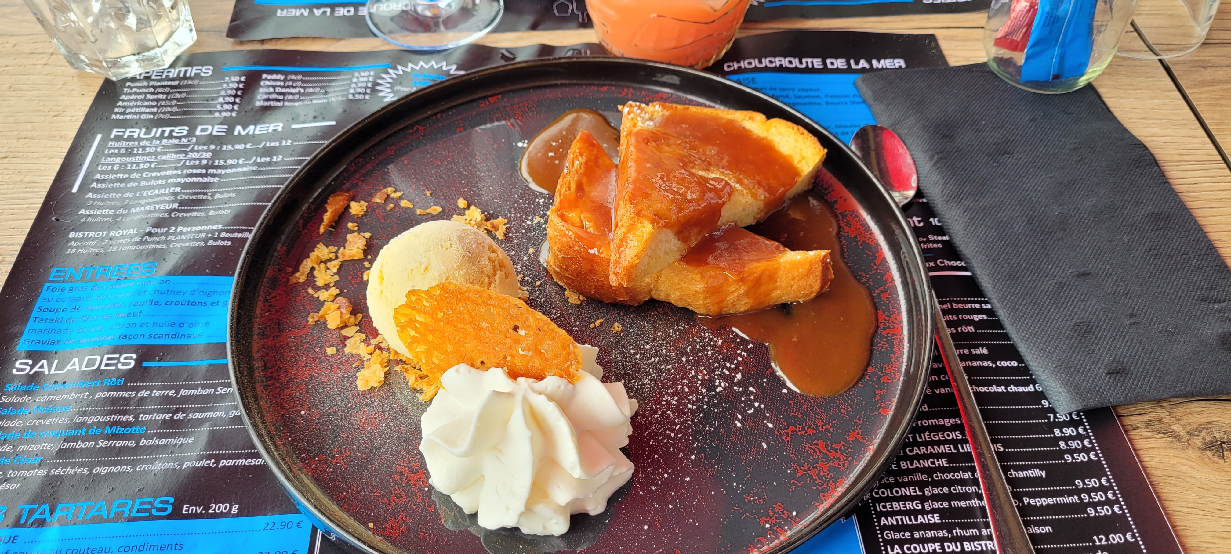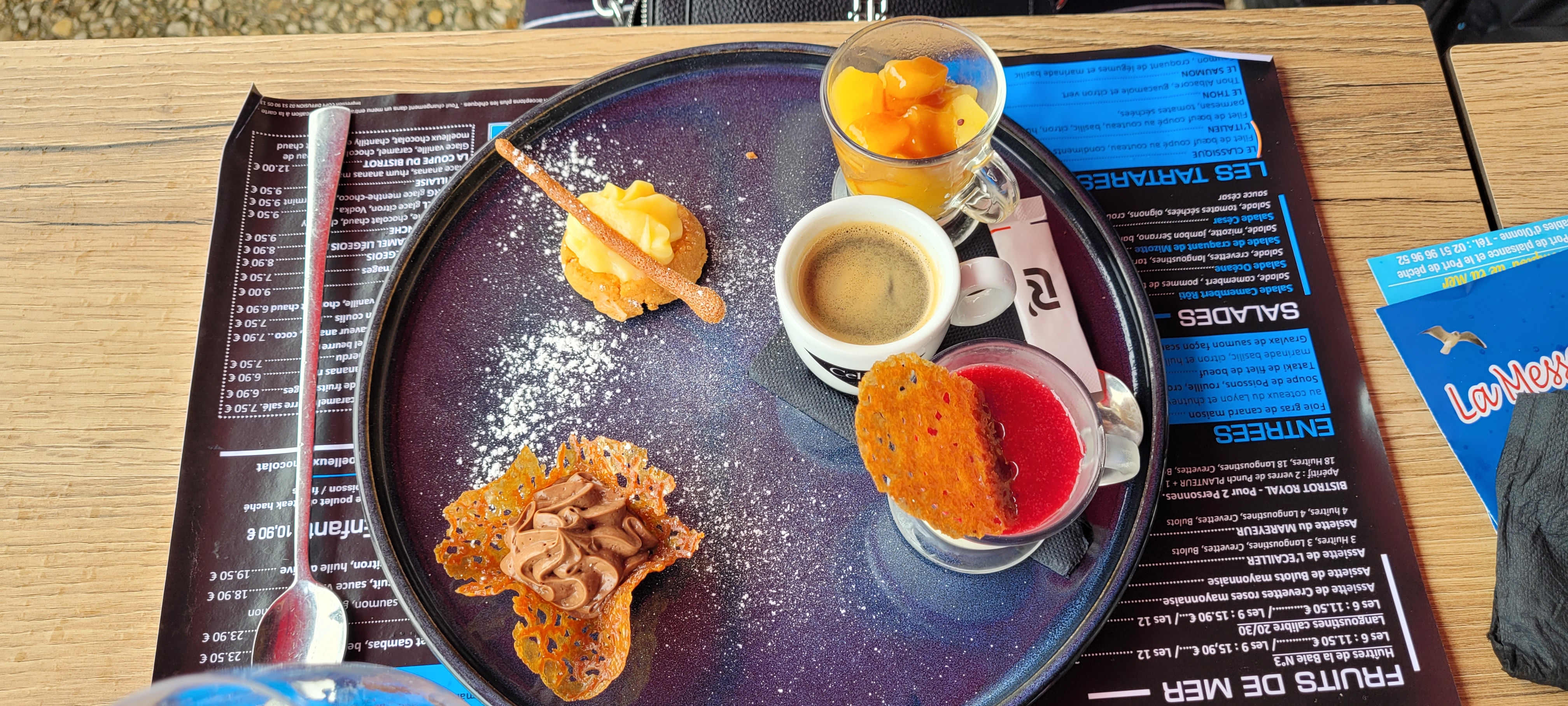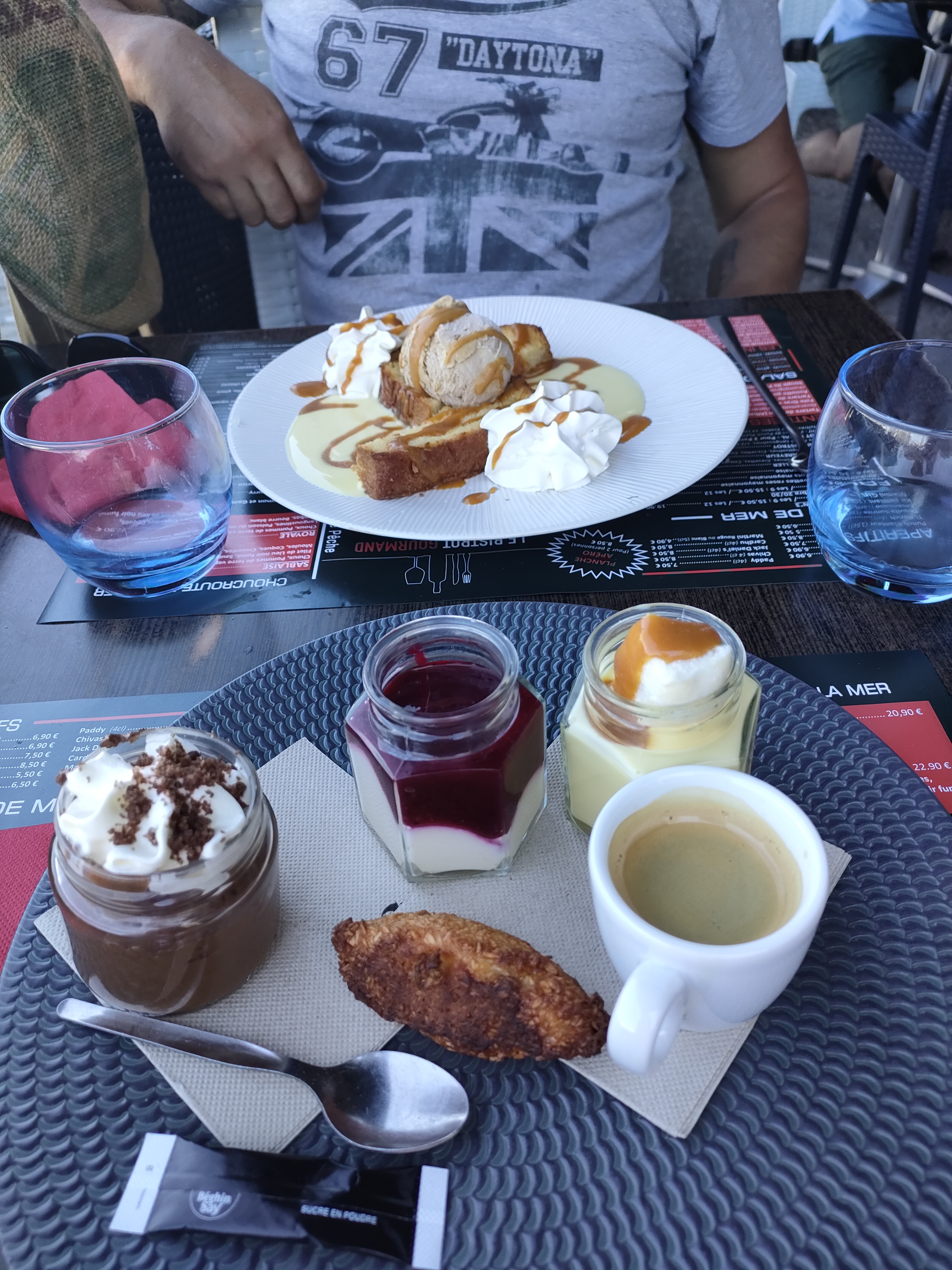 Très bon restaurant, serveurs corrects Nous avons pris des moules frites dommage que les frites ne soient pas faites maison. Desserts en photo , très bons Terrasse vue sur l'entrée du port Nous reviendrons
