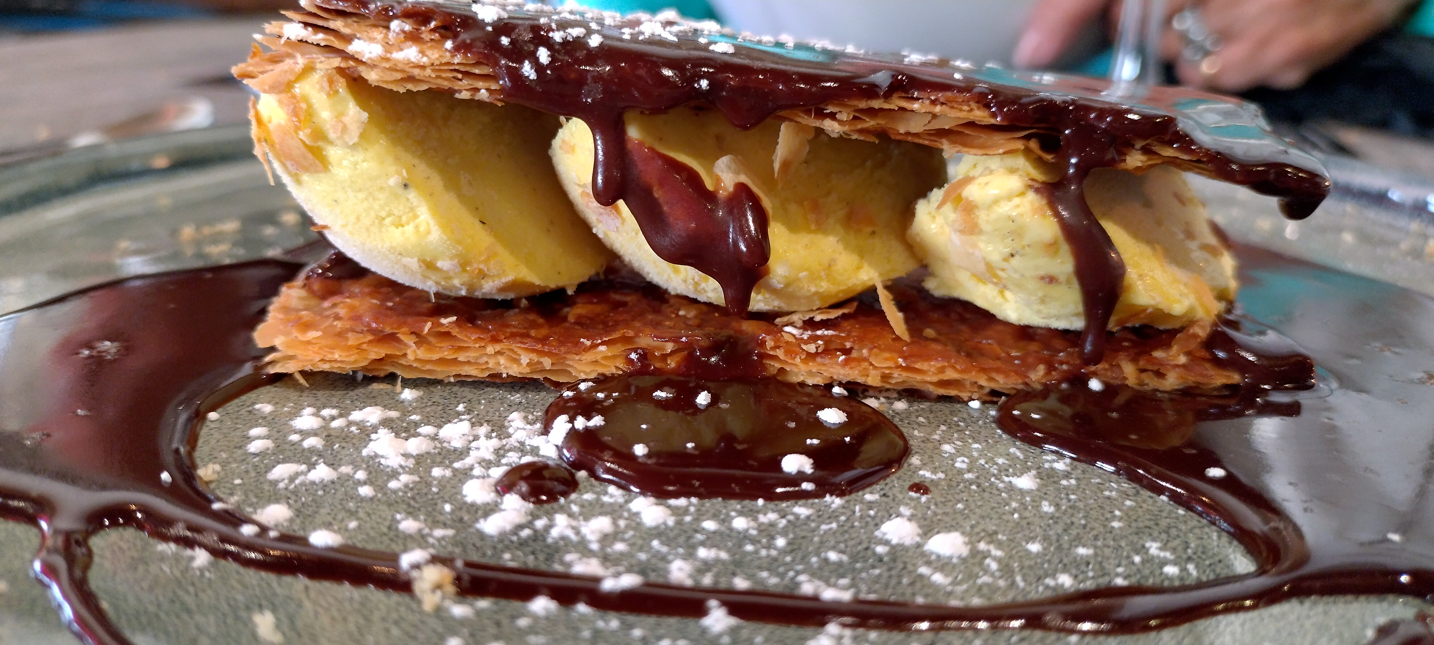 Nous sommes venus en famille juste pour prendre un dessert à une heure assez tardive et avons été très bien accueillis. Les desserts étaient très bons. Beau couché de soleil sur le port en prime 😀
