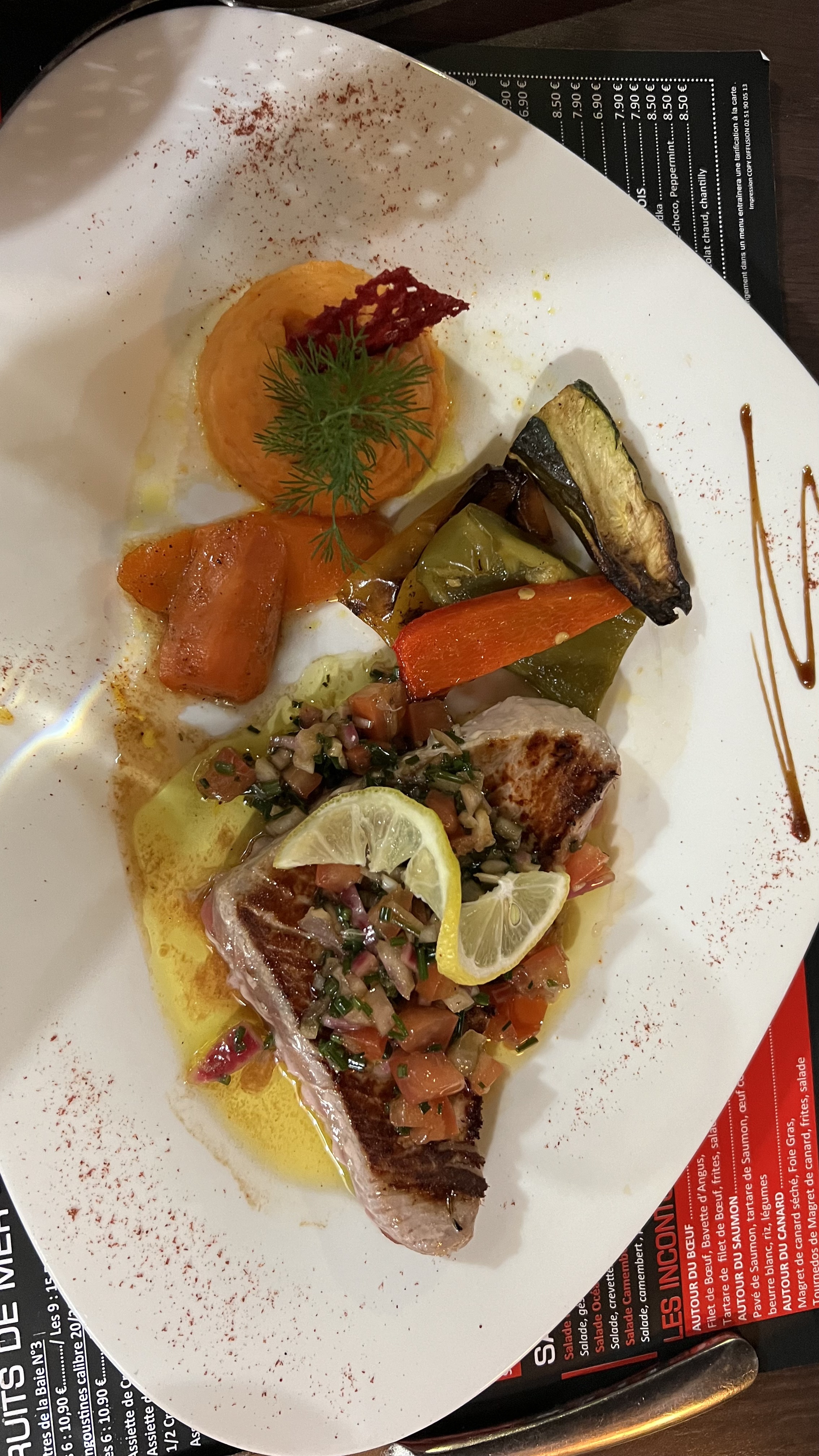 Restaurant sympa, et serveurs gentils. Nous avions pris une formule à 25,50€ (entrée + plat + dessert) Tout était très bon, et la présentation des plats était réussie. Mais j’ai trouvé personnellement que le pavé de saumon manquait d’accompagnement il y’avait que 2/3 petits légumes avec. Le reste était copieux.