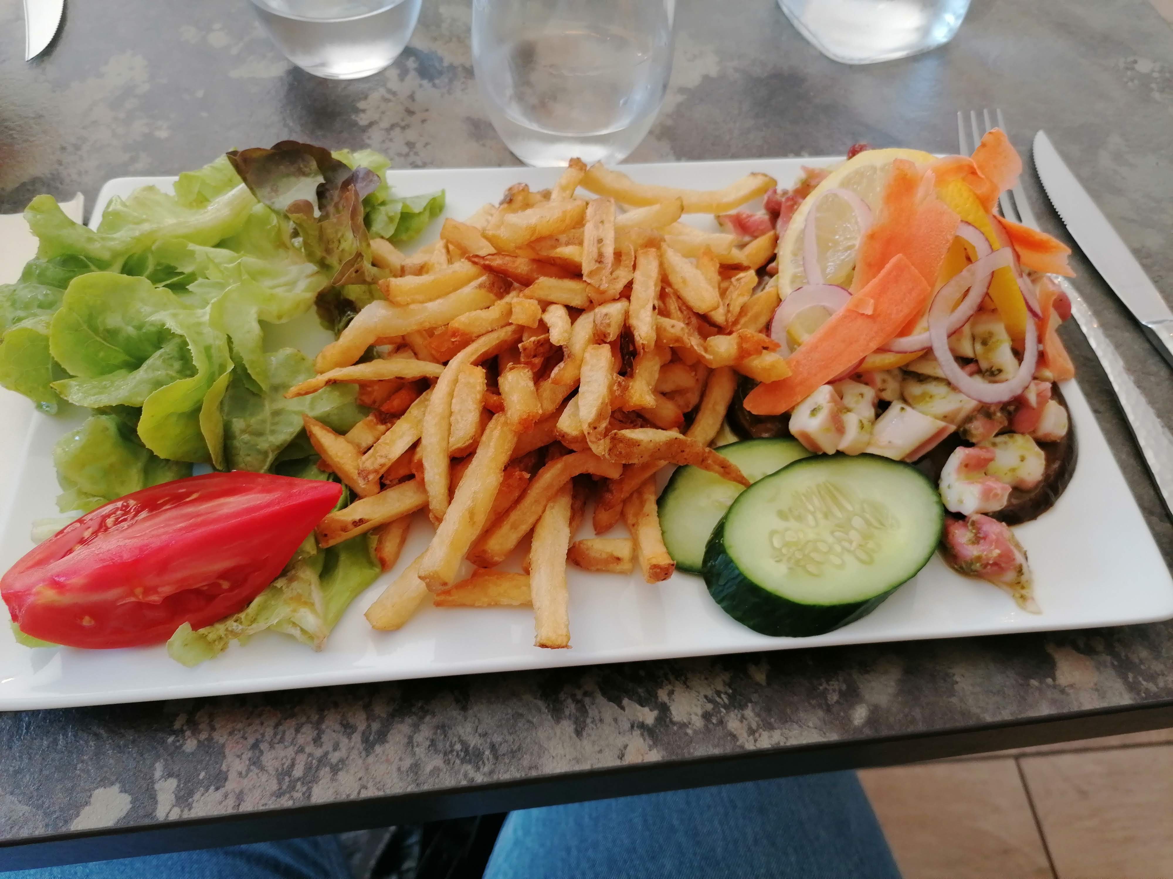 Repas pas mauvais a part les frites et le pain sec, très dommage par contre une des serveuses pas du tout aimable et qui était tres pressée de débarrasser.