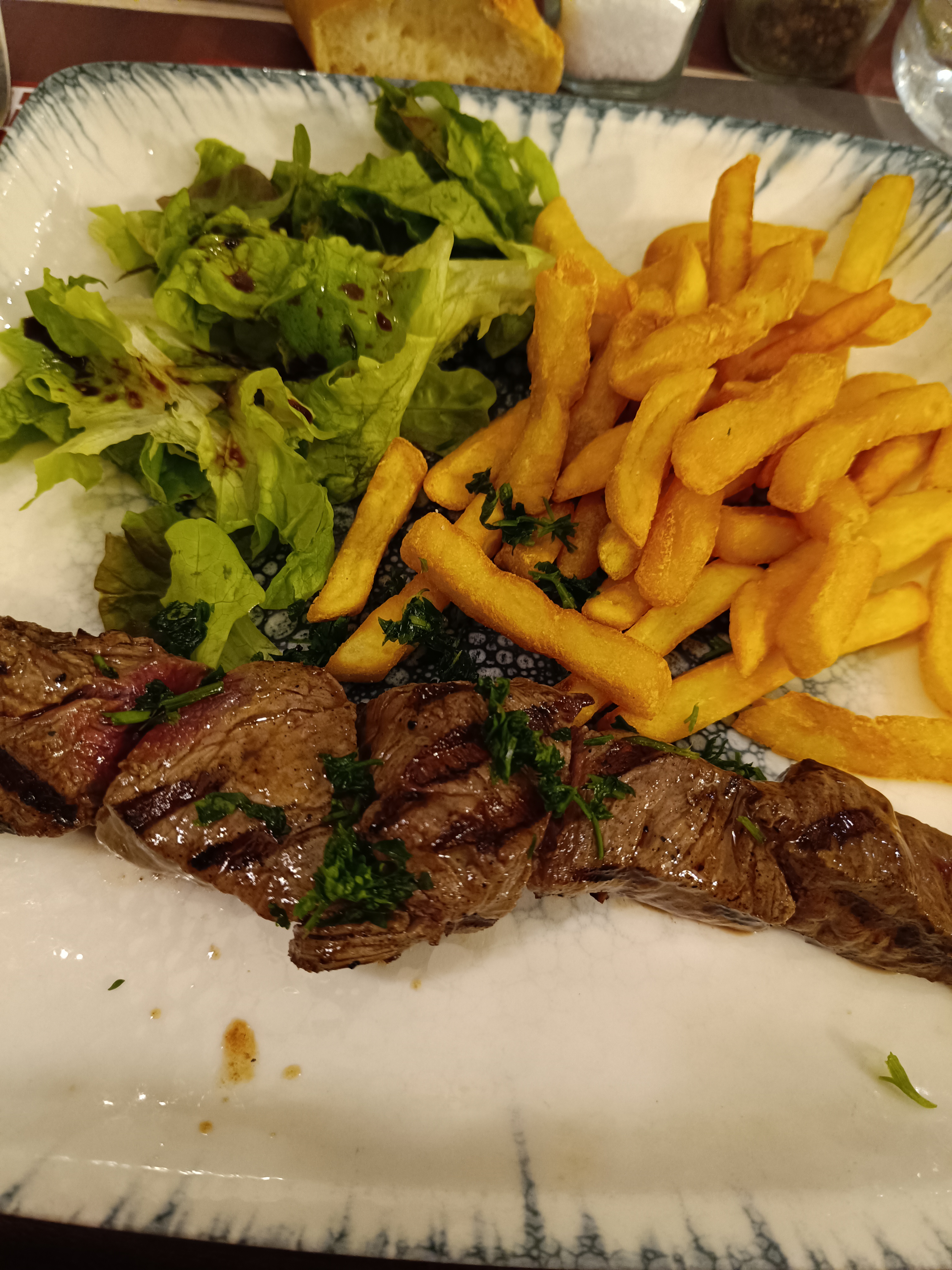 Repas peu copieux, menu a 29€ pas au prix, entrée avec gesiers trop cuit, plat brochette de boeuf goût cramé avec accompagnement de salade terreuse. Pas de speculos dans le tiramisu, J’ai passer un repas plutôt désagréable