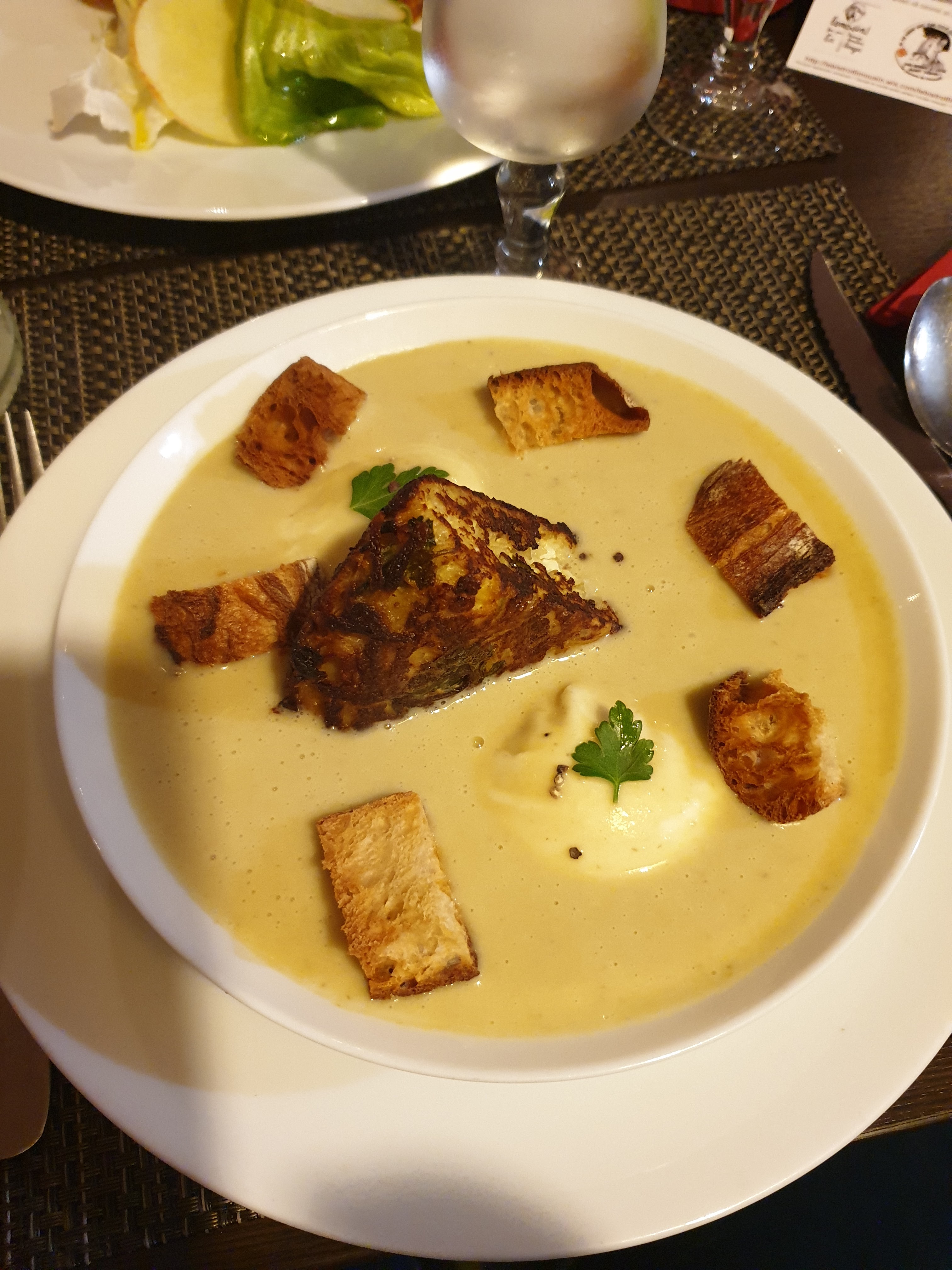 Une soupe et une tourtière salade 37€! Non mais on est tombé sur la tête à Saint Junien ? Bon mais pas exceptionnel, mais un menu entrée du jour et plat du jour à 37€ incroyable.