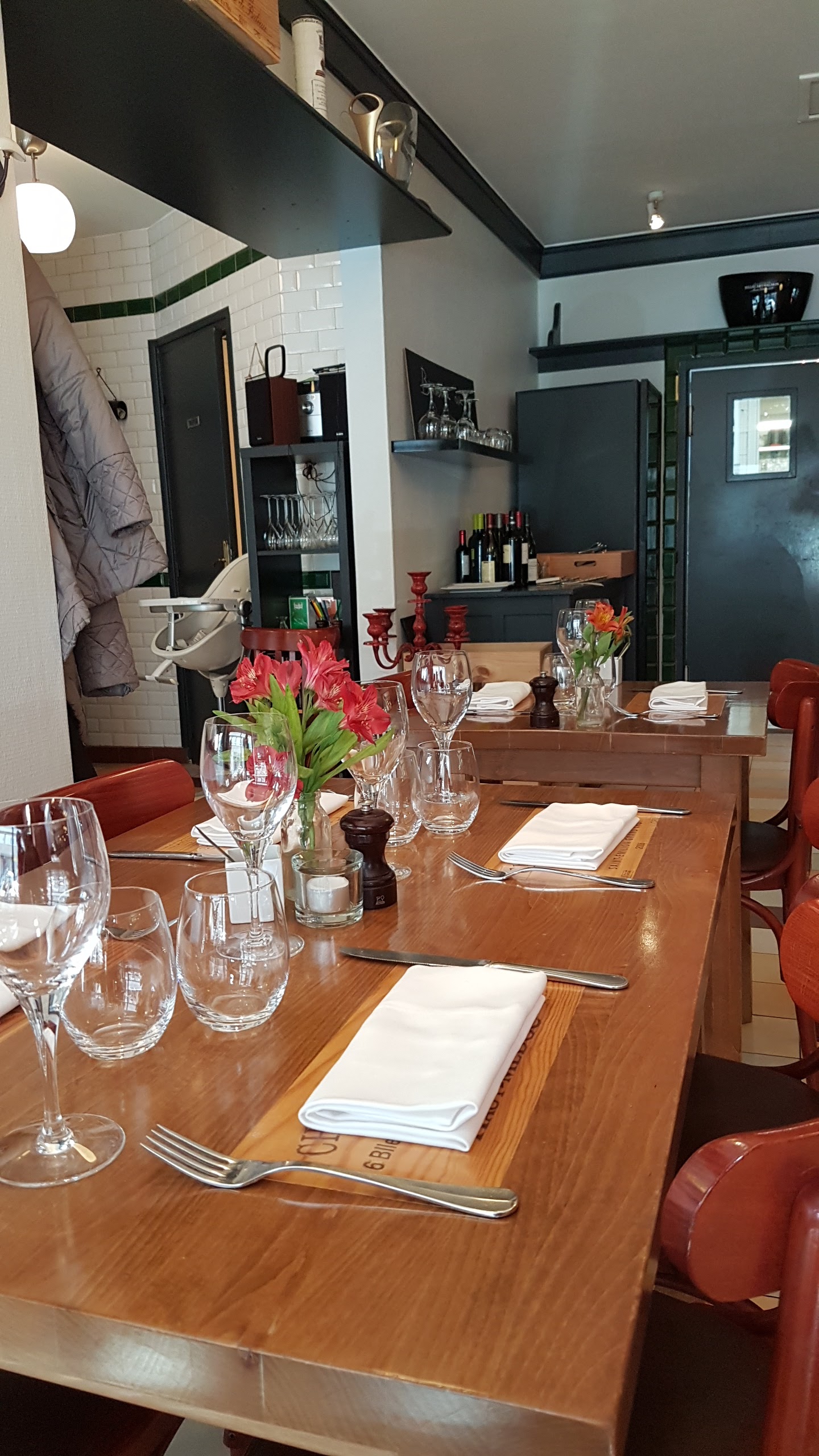 Super bonne découverte!!! Plats excellents, produit frais et préparé minute de l’entrée au dessert ce qui justifie un prix de 36€ le menu et le petit temps d’attente entre les plats. La décoration du restaurant tel un bistrot chaleureux et convivial avec des tables originales. Pour ce qui est du service, serveuses « friendly » et souriantes. Je reviendrais et recommande.