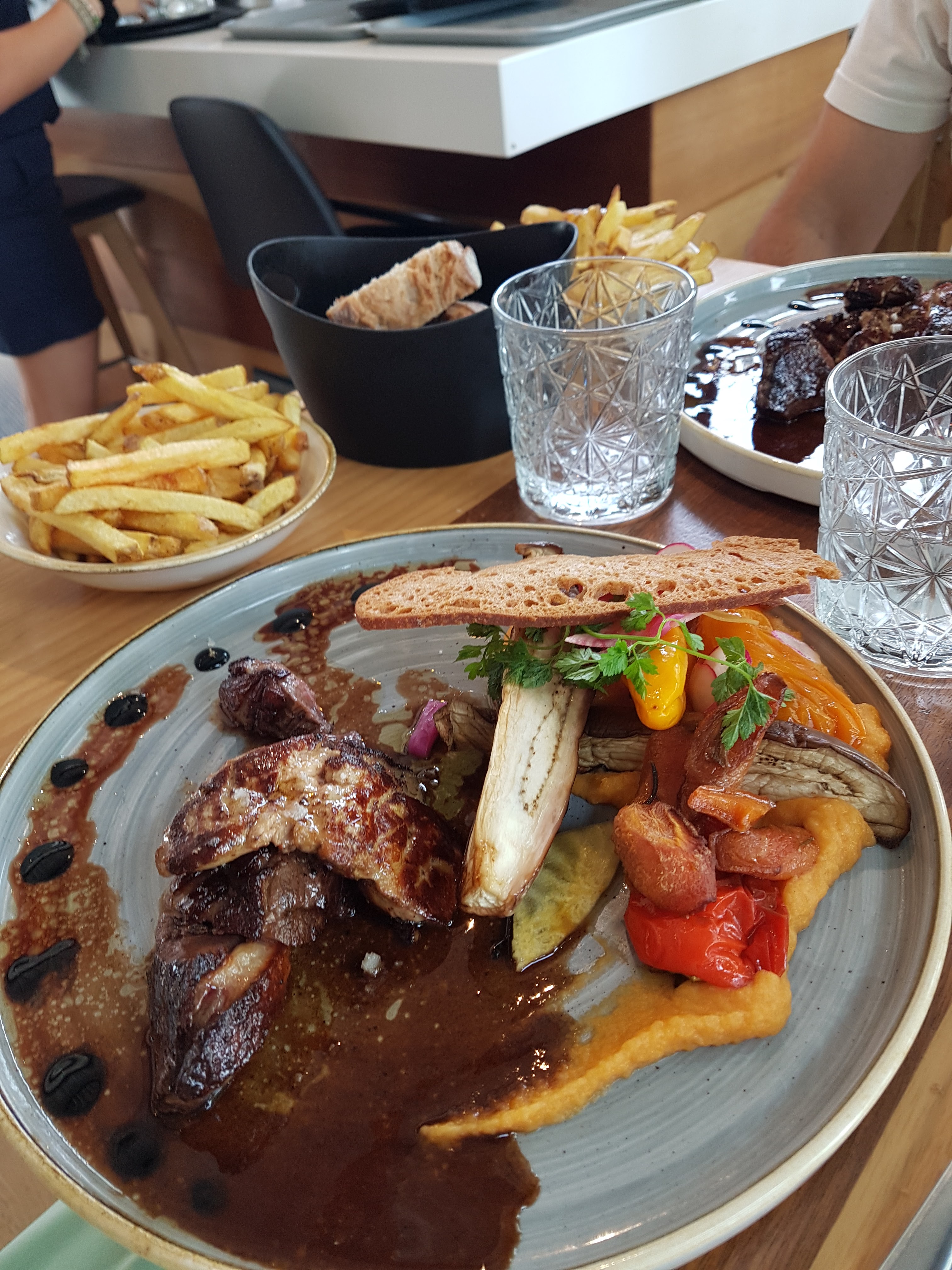 Super rapport qualité/prix l'émincé de magret canard façon chateaubriand avec donc une belle escalope de foie gras poêlé. Cuisson parfaite, accompagné de délicieuses frittes maison et de petits légumes. Pour 24 Euros ! Le tout servi avec sourire et attention. Pas étonnant que ce restaurant ait du succès.