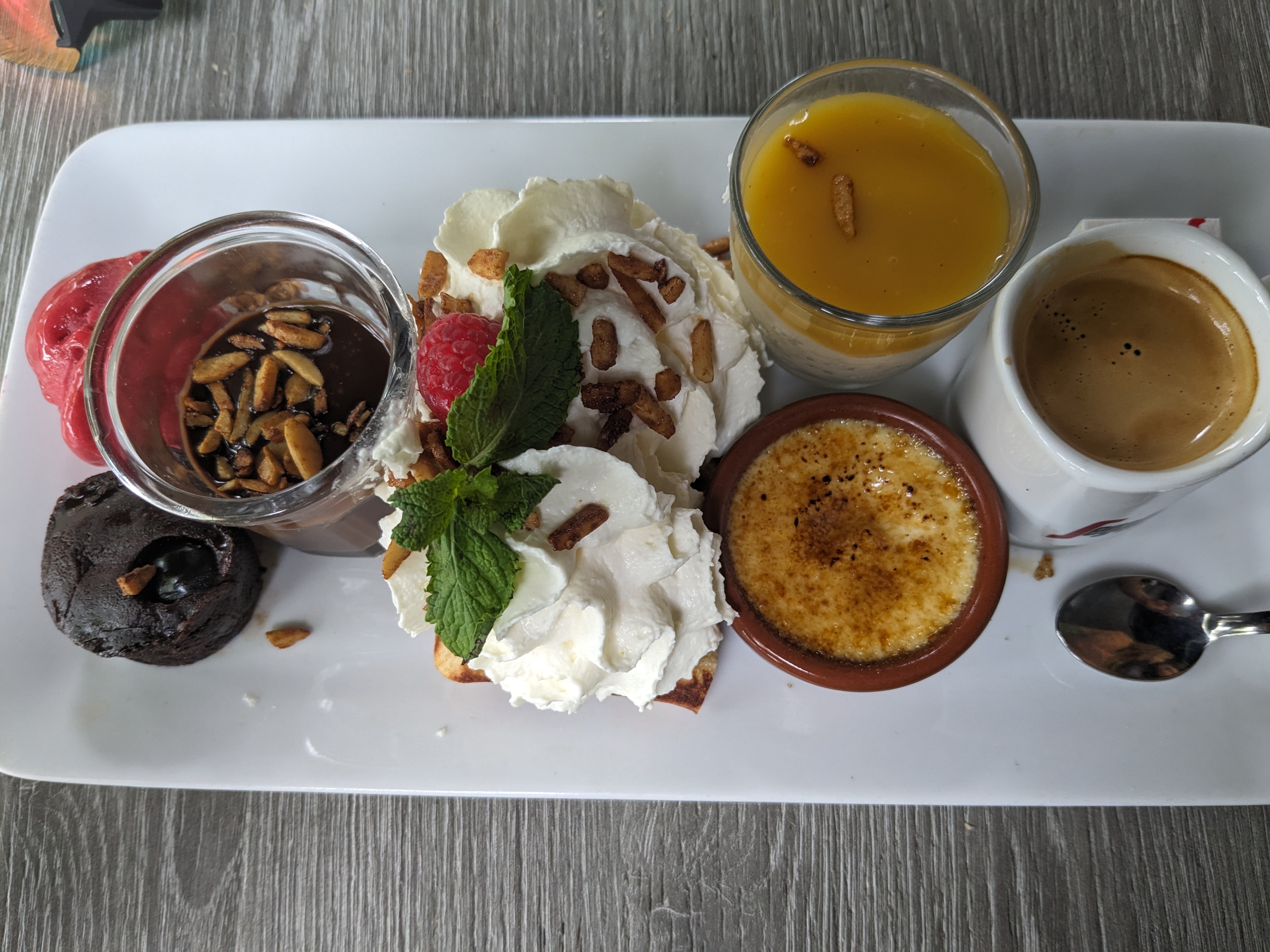 Réservation nécessaire car le restaurant est rapidement complet. Une serveuse particulièrement agréable et efficace (jeune femme avec lunettes). Un bon rapport qualité prix. Les mets sont goûteux et bien cuisinés si bien que nous voulons absolument terminer notre assiette. Mais mince, il reste alors très peu de place pour le dessert ! La serveuse a gentiment accepté que nous partagions le café gourmand : un régal !