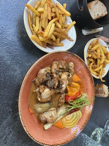 Plat consistant. Très belle présentation. Accompagnement varié et équilibrée. De très belles et bonnes assiettes. Service assez rapide pour journée très chargé en raison du tour de France dans la ville. Légèrement entaché par les remarques sur les clients effectivement très exigeant et pas très coopérant. Mais même si c'est vrai nous n'aurions pas dû l'entendre. Je reste très contente et conseille cette adresse.