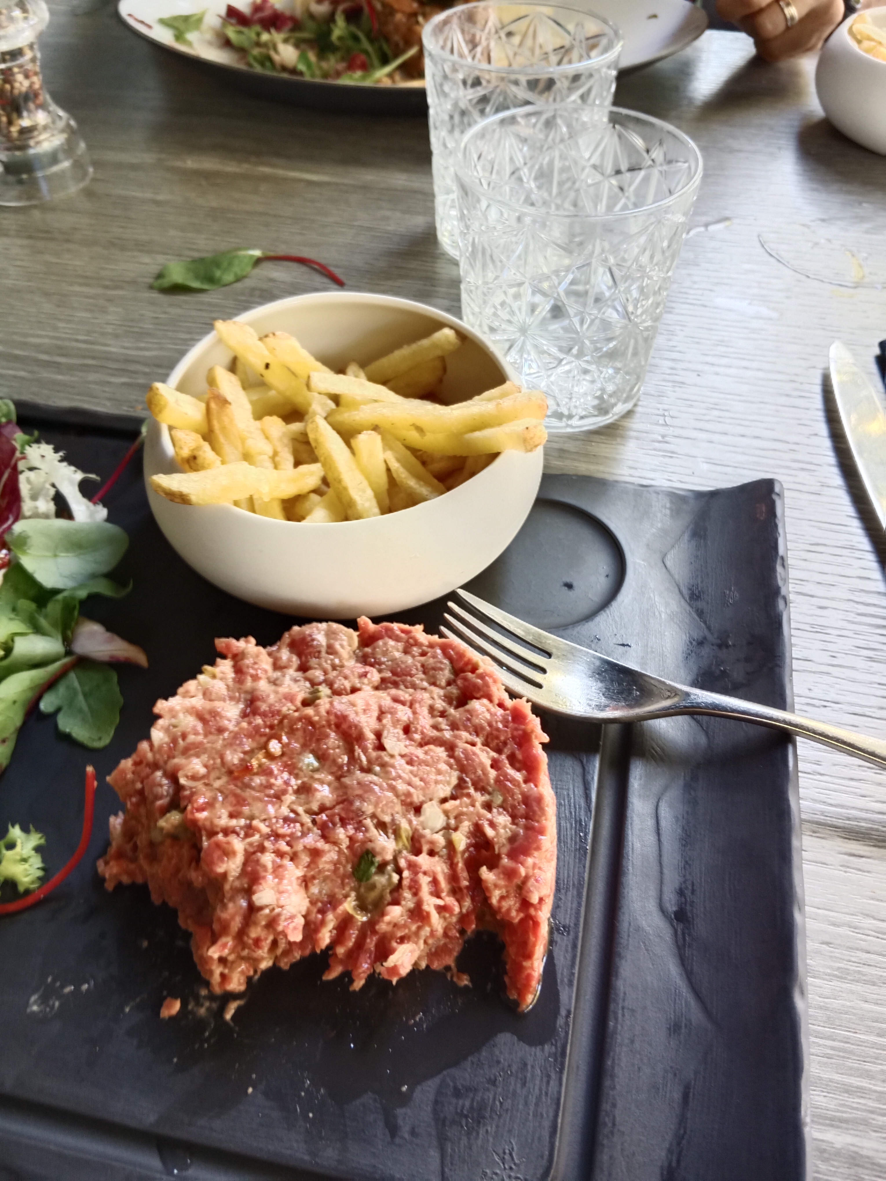 Mon plat était un steak tartare et vraiment bon, par contre très déçu de mon verre de vin trouble et servi avec un dépôt. Dommage.