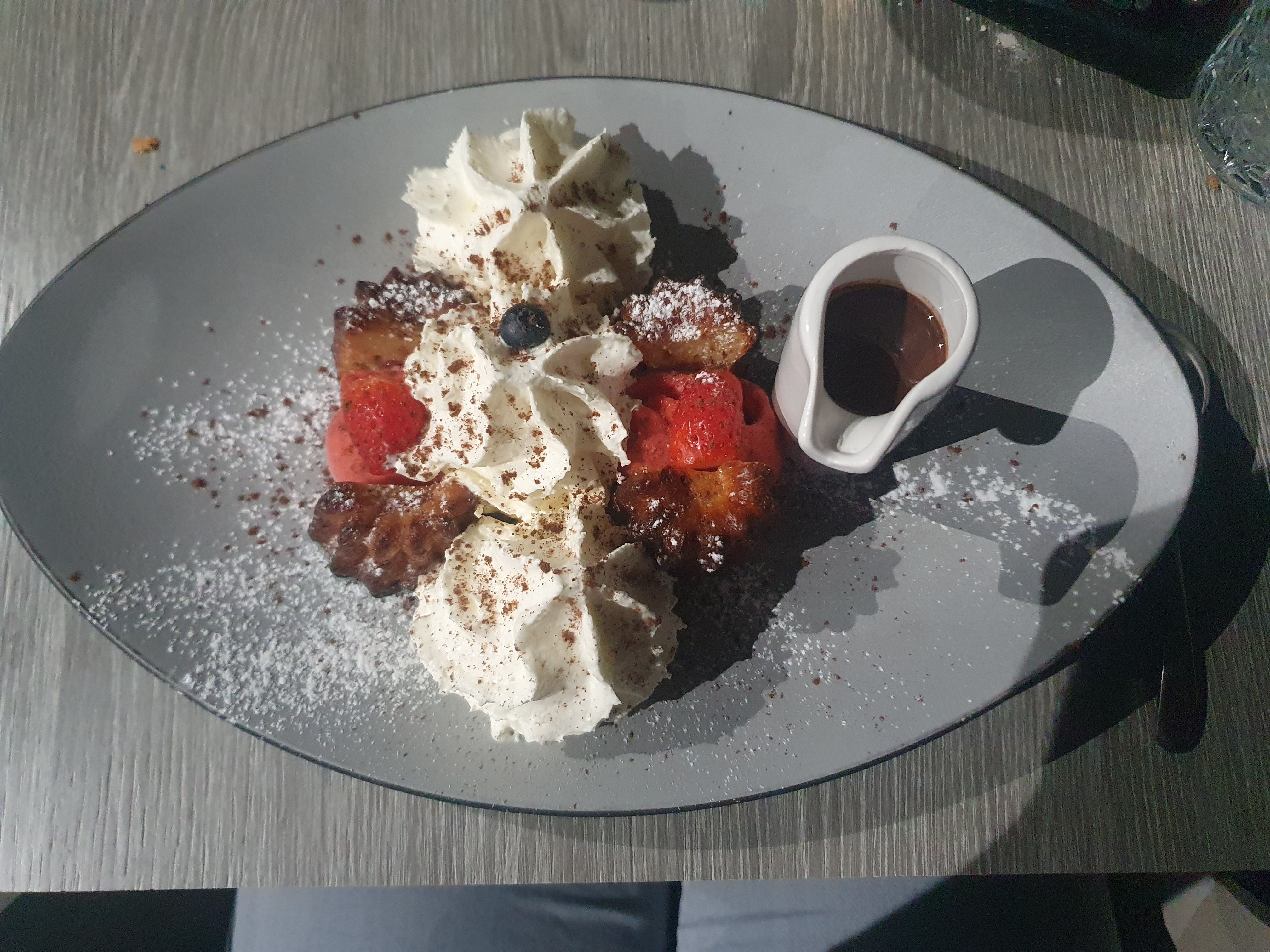 Super moment pour le dîner! En terrasse avec un superbe coucher de soleil en prime. Petit bémol sur le service (attente pour la prise de commande apero, plat et dessert, verre de vin commandé mais pas servi.. ). Par ailleurs on déconseille la terrasse si la fumée de cigarette vous gêne. Sinon les plats sont joliment préparés et surtout délicieux et copieux. La carte est très variée.