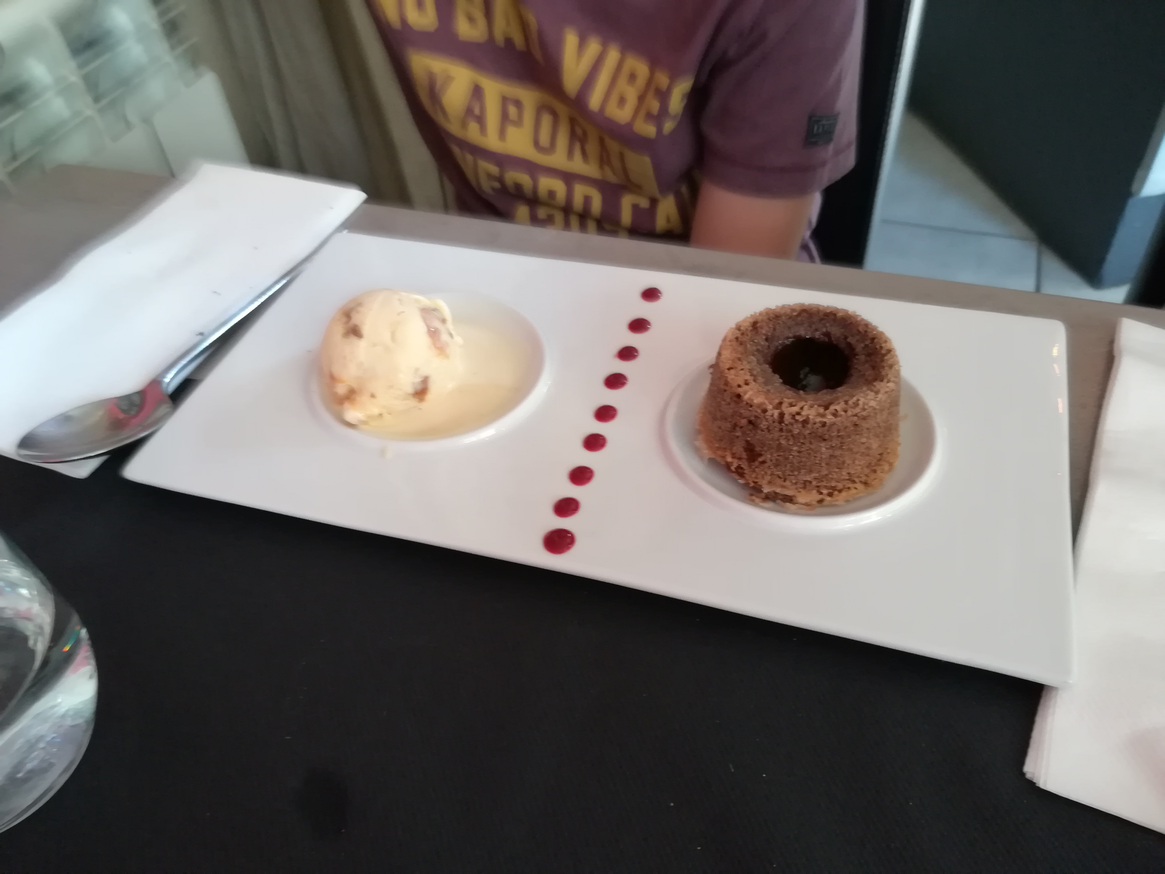 Le repas était excellent, généreux, du goût, aussi bien le plat que le dessert. Muffin crème de marron...excellent je recommande. Le service de qualité. Un excellent moment à 2.