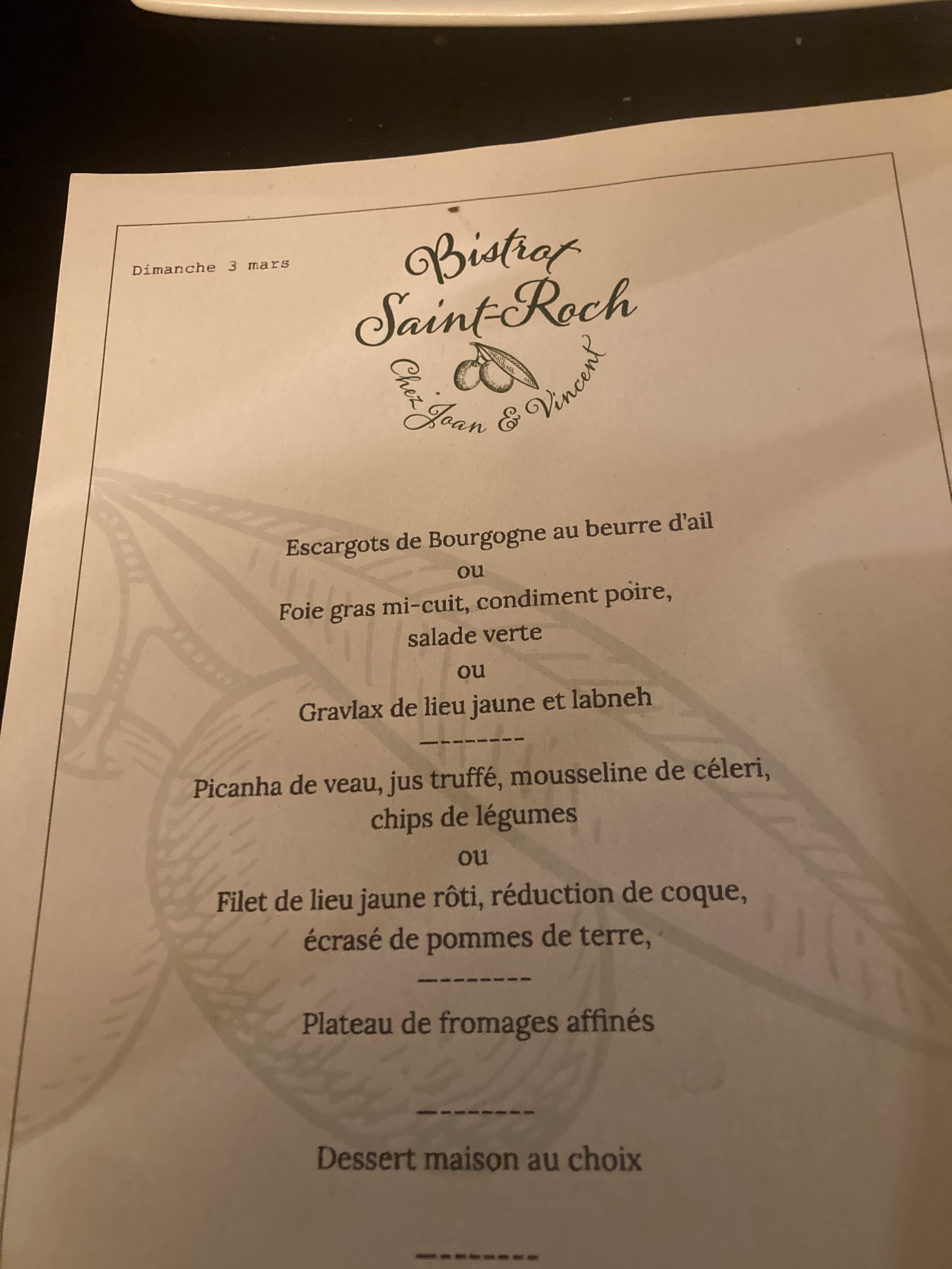Une expérience gastronomique exceptionnelle !!! De l'accueil chaleureux au service impeccable, chaque détail a contribué à faire de cette soirée une expérience unique. Chaque plat était une explosion de saveurs exquises, préparées avec des produits frais, de saison et présentés avec soin. Un véritable délice pour les papilles. Je recommande vivement Le Bistrot Saint Roch, à tous ceux qui recherchent une expérience culinaire exceptionnelle avec un services irréprochable. Hâte d'y retourner bientôt !