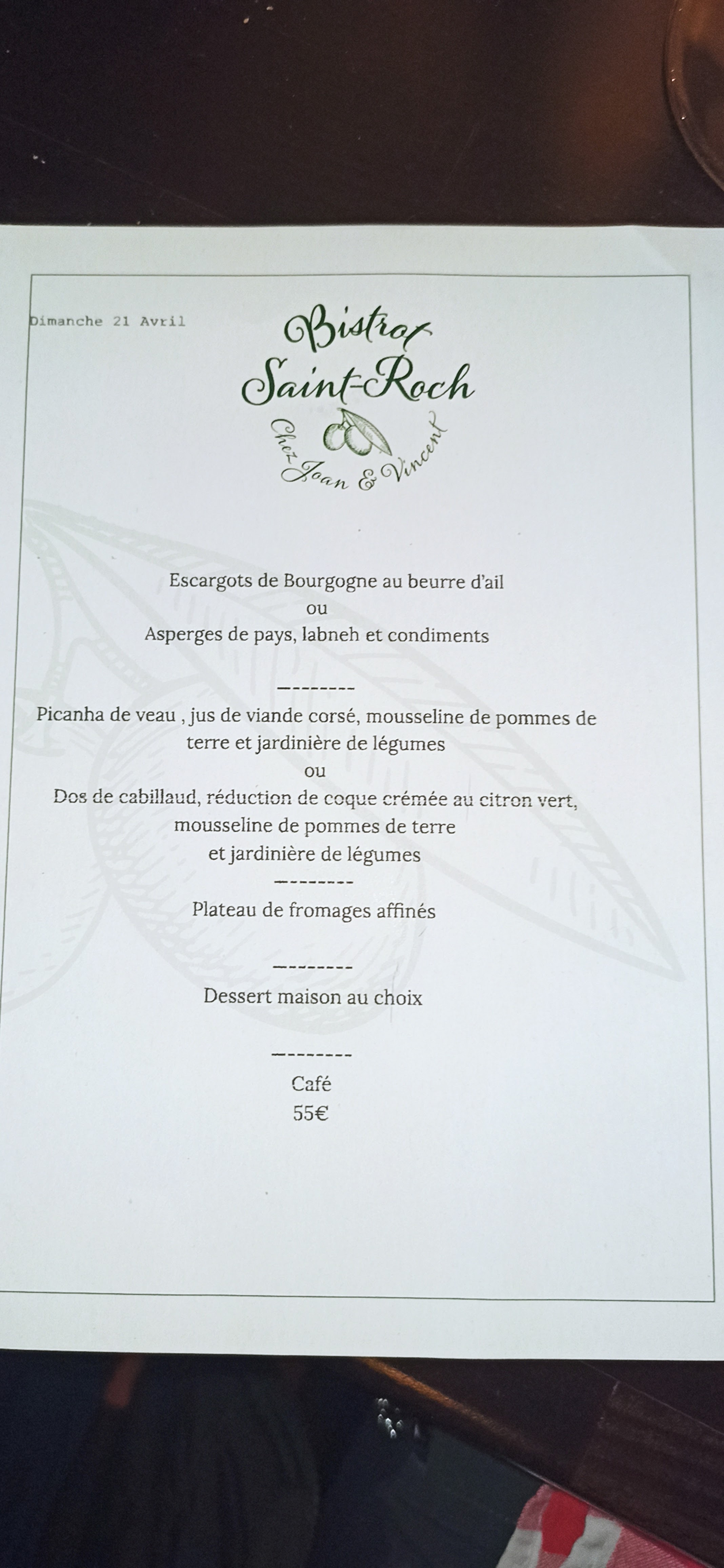 Un personnel et un chef très agréables Un menu qui n'a rien à envier aux plats de la carte Très belle rencontre et une belle soirée en terrasse Nous recommandons
