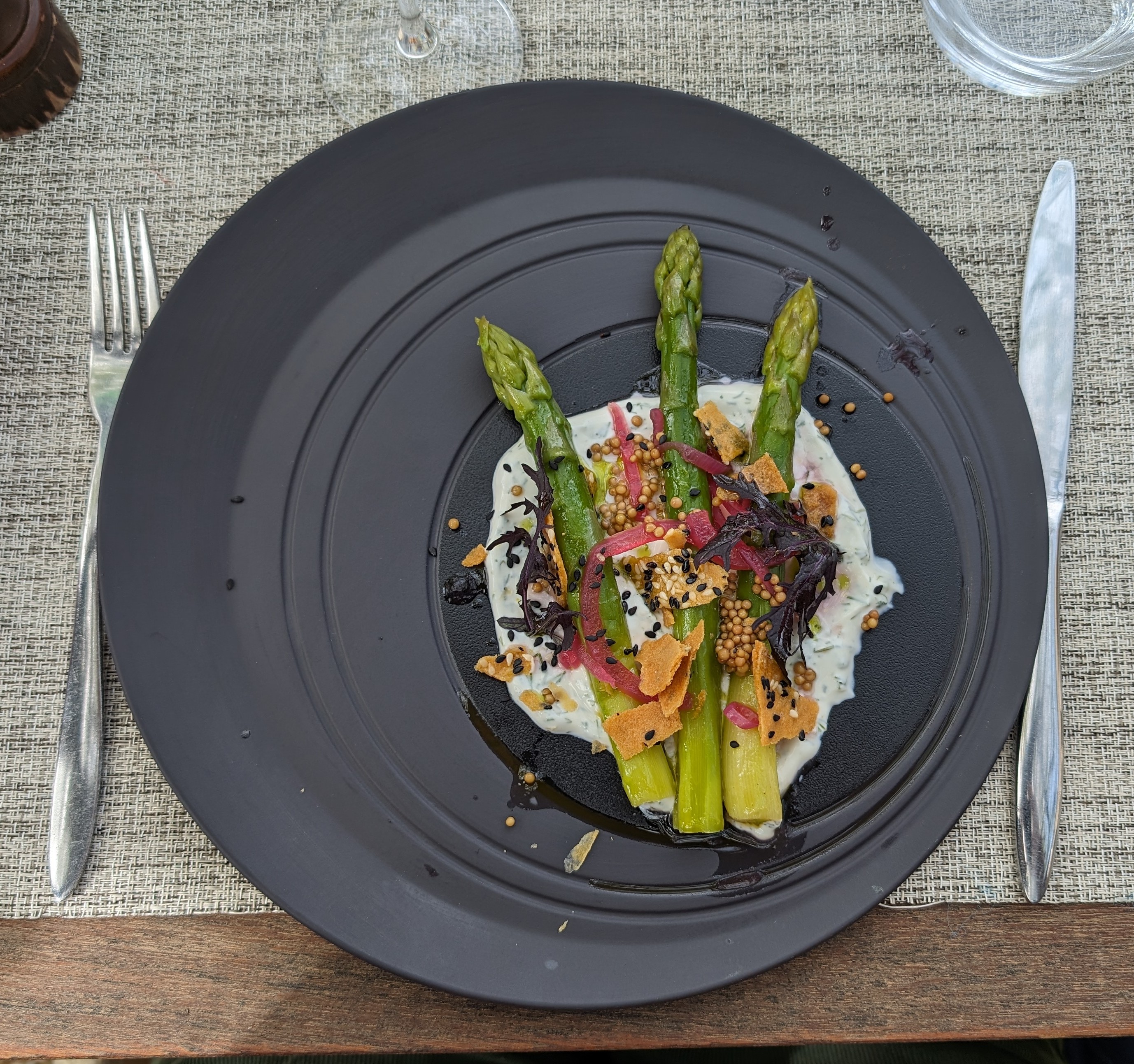 Un restaurant assez exceptionnel - si vous êtes à proximité, vous devez y dîner. Une carte incroyable. Le personnel est merveilleusement sympathique et surtout très attentionné. Et la nourriture est géniale. Aujourd'hui, nous avons eu des asperges vertes aux morilles pour l'entrée - vraiment exquises. Et pour le plat principal un filet de cabillaud grillé à la perfection. Je ne me souviens pas avoir si bien mangé avant. Tout est parfait - trois étoiles Michelin pour moi!! L'ambiance générale est également très agréable, les toilettes sont ultra propres. Recommandation absolue!