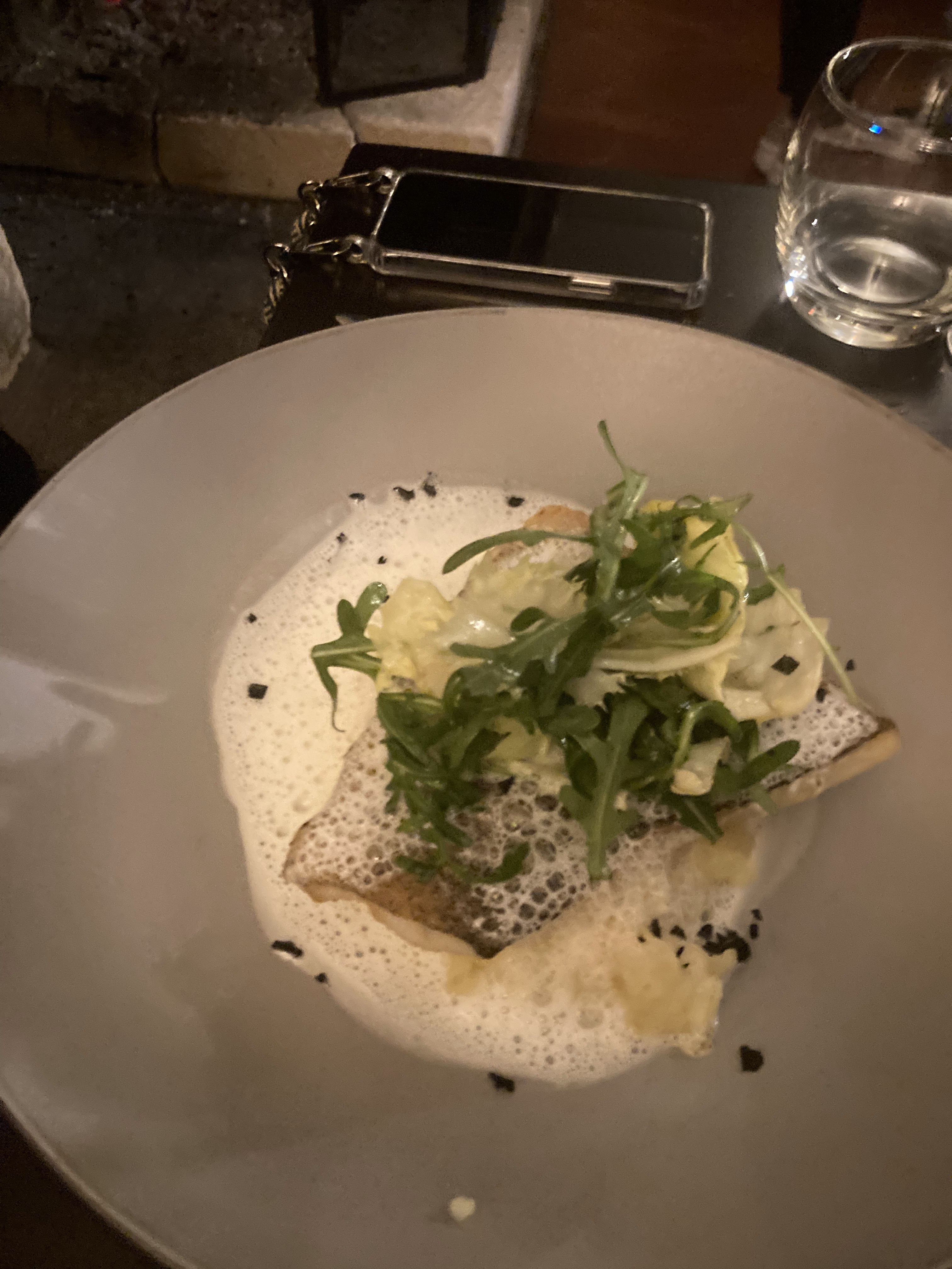 Nous sommes venus sans réservation et nous sommes assis dehors (c'était juste ok mais je recommande fortement de réserver une table à l'avance… nous avons essayé plusieurs fois sans réservation sans succès). Le service était exceptionnel ! Détendu et parfait. La nourriture! Après l'entrée nous étions déjà contents mais le plat principal était également très très bon (nous avons eu des « dos de morue » voir les photos…) Pour l'extérieur, mieux vaut attendre quand il ne fait plus froid… ;-) mais la nourriture en vaut la peine !