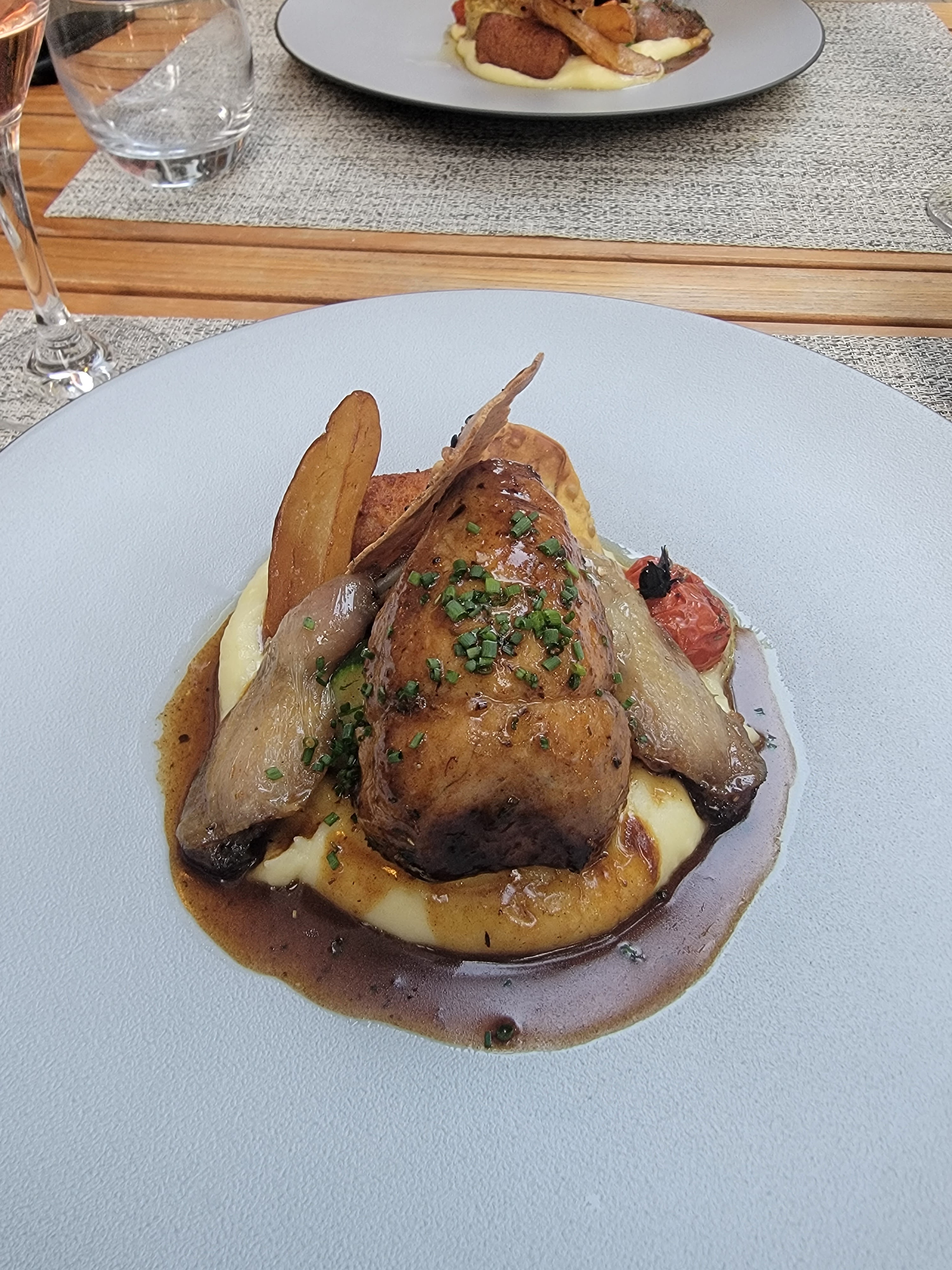Venu un midi au mois d’octobre , le lieux et Suberbe terrasse ombragé . La serveuse connais très bien sont menu du jours très bien sa carte des vin , rien à redir sur sa présentation ni sa façon de travailler , serveuse très très professionnel ! Je pense quelle devrait montré exemple à son équipe . L'entrée était très fine , brandade de carrelet Caille sauce brune exelent . Et mention très bien pour le dessert !!! Nous reviendrons À très bientôt .