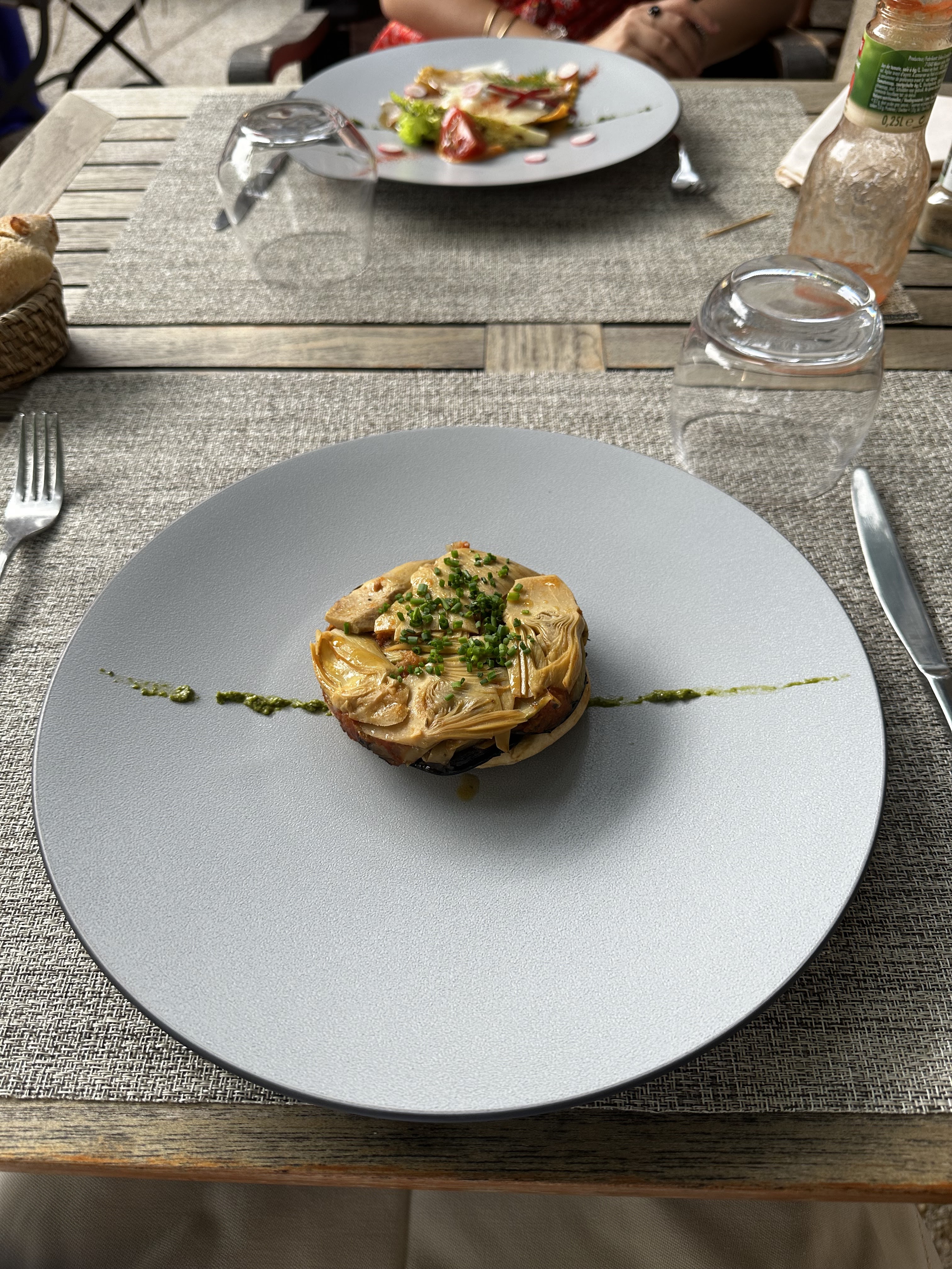 Au déjeuner, nous sommes entrés sans réservation (la nourriture était excellente), mais le soir, il faut réserver. Cet endroit est incroyable - une mention Michelin, de la super nourriture et des prix toujours très raisonnables. Nous nous sommes assis dans la cour, sous les peupliers et tout : l'ambiance, le dîner, le service étaient parfaits.