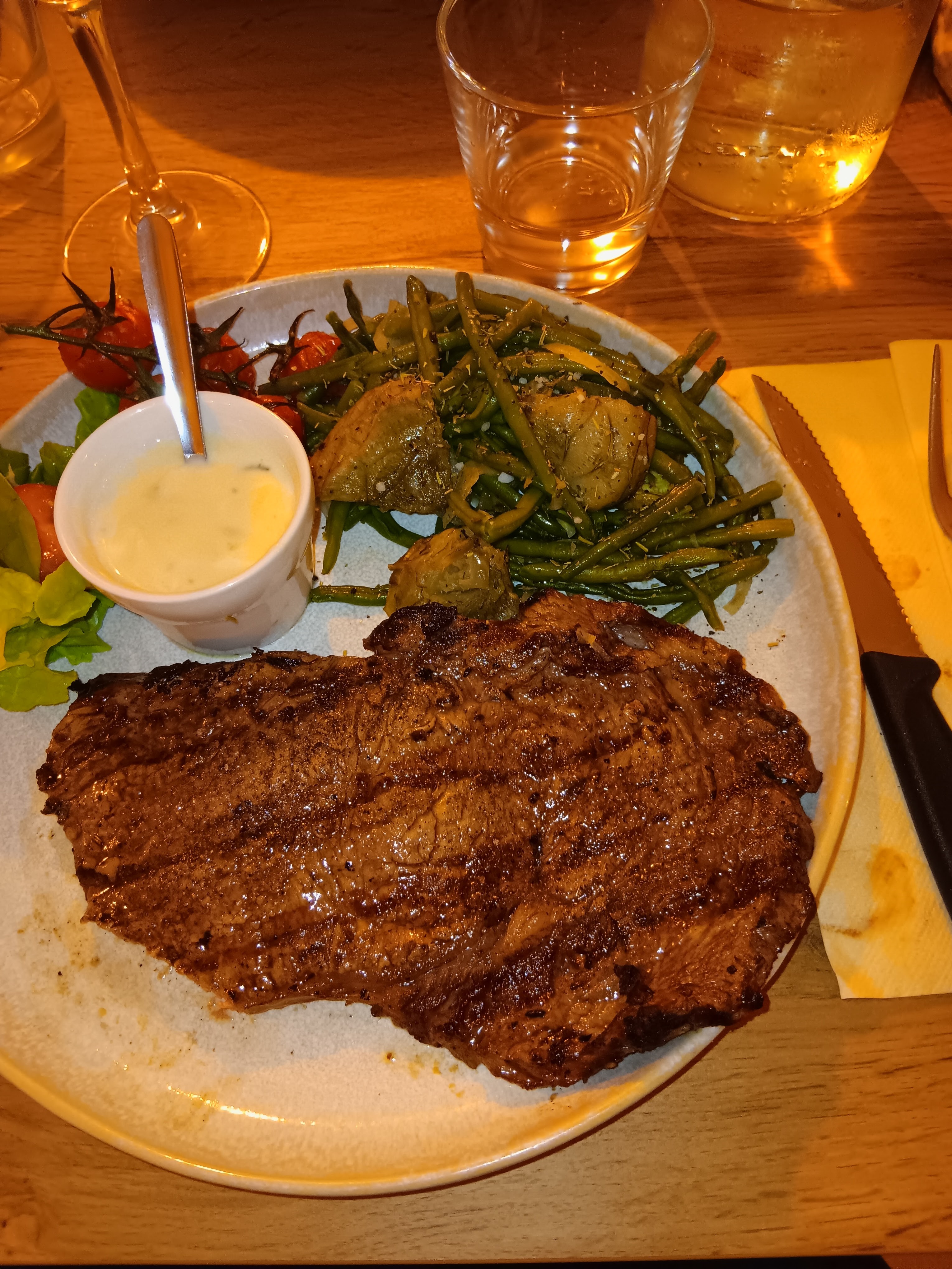 excellent et original tartare de saumon et mon copain s’est régalé avec la pièce du boucher, je conseille !