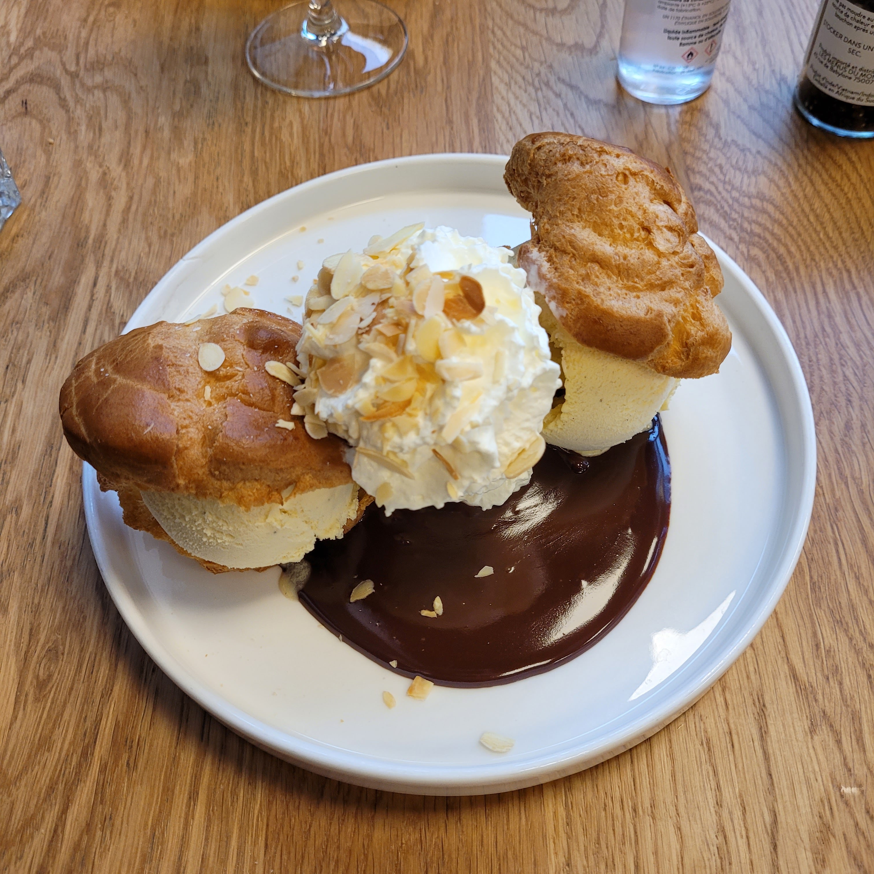 Dégustation d une côte de boeuf de bête de concours... Juste magnifique. Suivi des profiteroles maison a tomber par terre.. c est toujours aussi bon. Allez y c est un super endroit chaleureux et on y mange trop bien