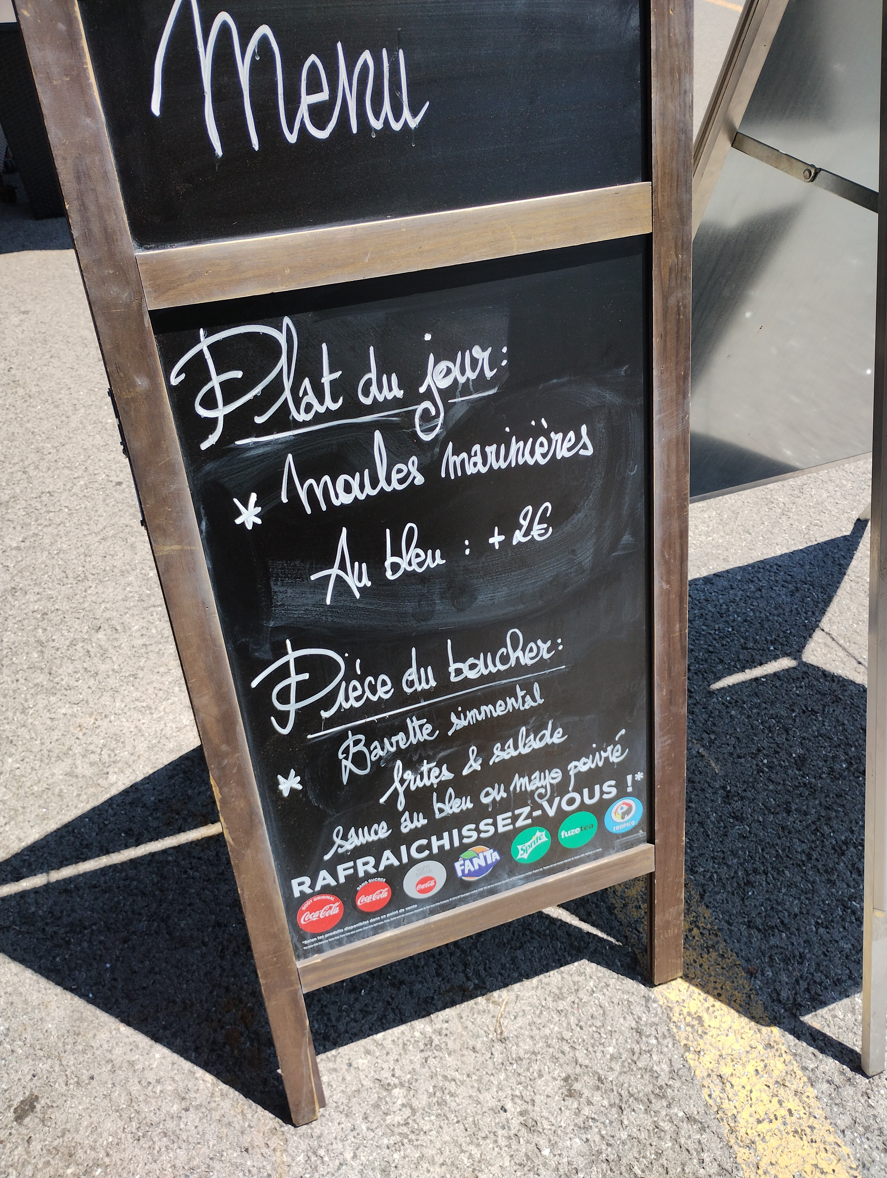 C'est bon et efficace. Malgré tout le sel à disposition ou tout le monde met ses doigts me dérange. Du coup repas sans sel, la sauce bleu a compensé.