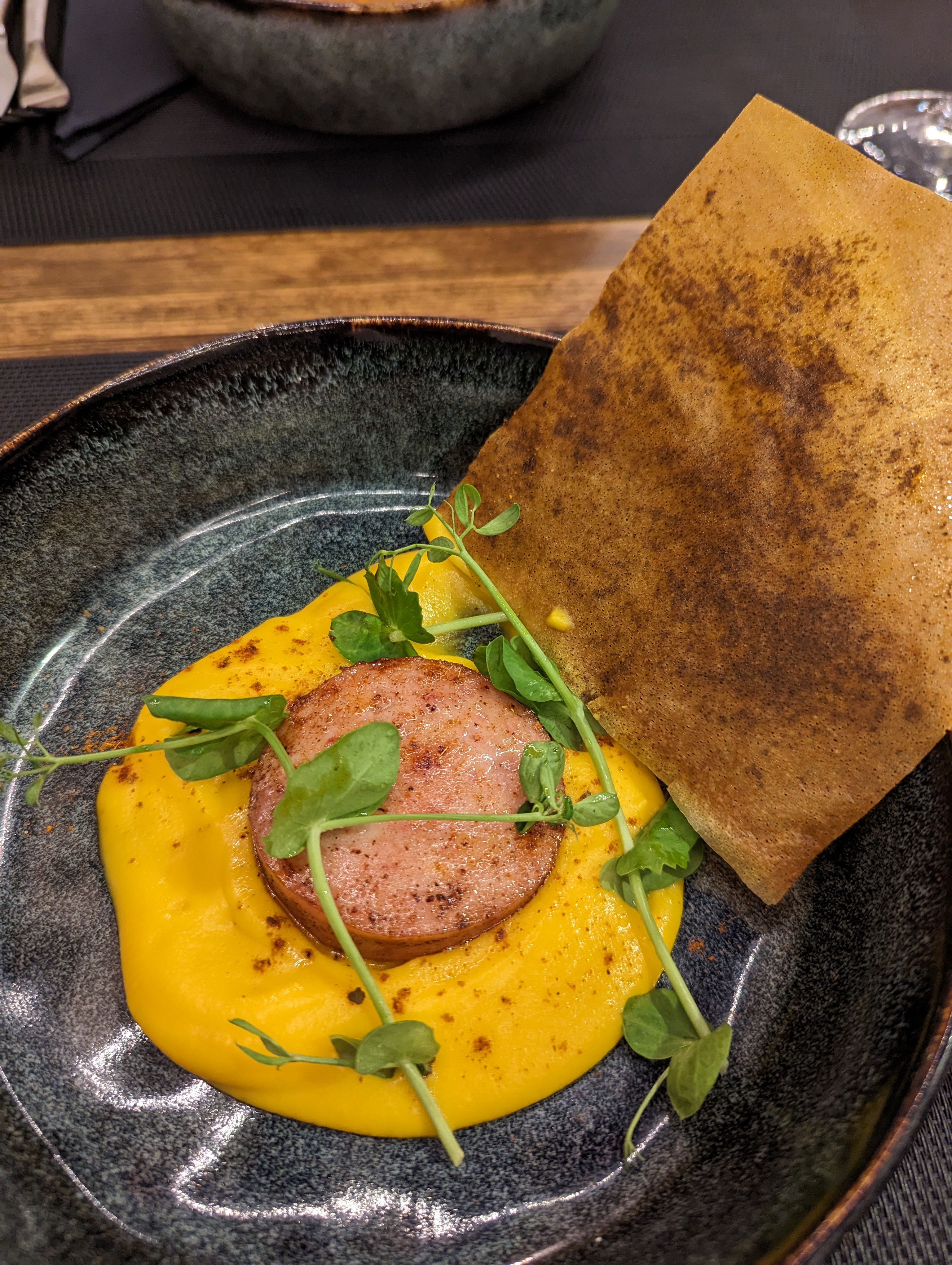 Nous y sommes allés plein d'enthousiasme. Nous avons été déçus, le service est très long et la cuisine même si elle peut être savoureuse ne nous a que très moyennement plue. Trop de glaces, la saint jacques en carpaccio noyée dans une vinaigrette aux agrumes amère. Le magret était très très bon cependant. Pour nous , trop d'originalité qui masque le produit
