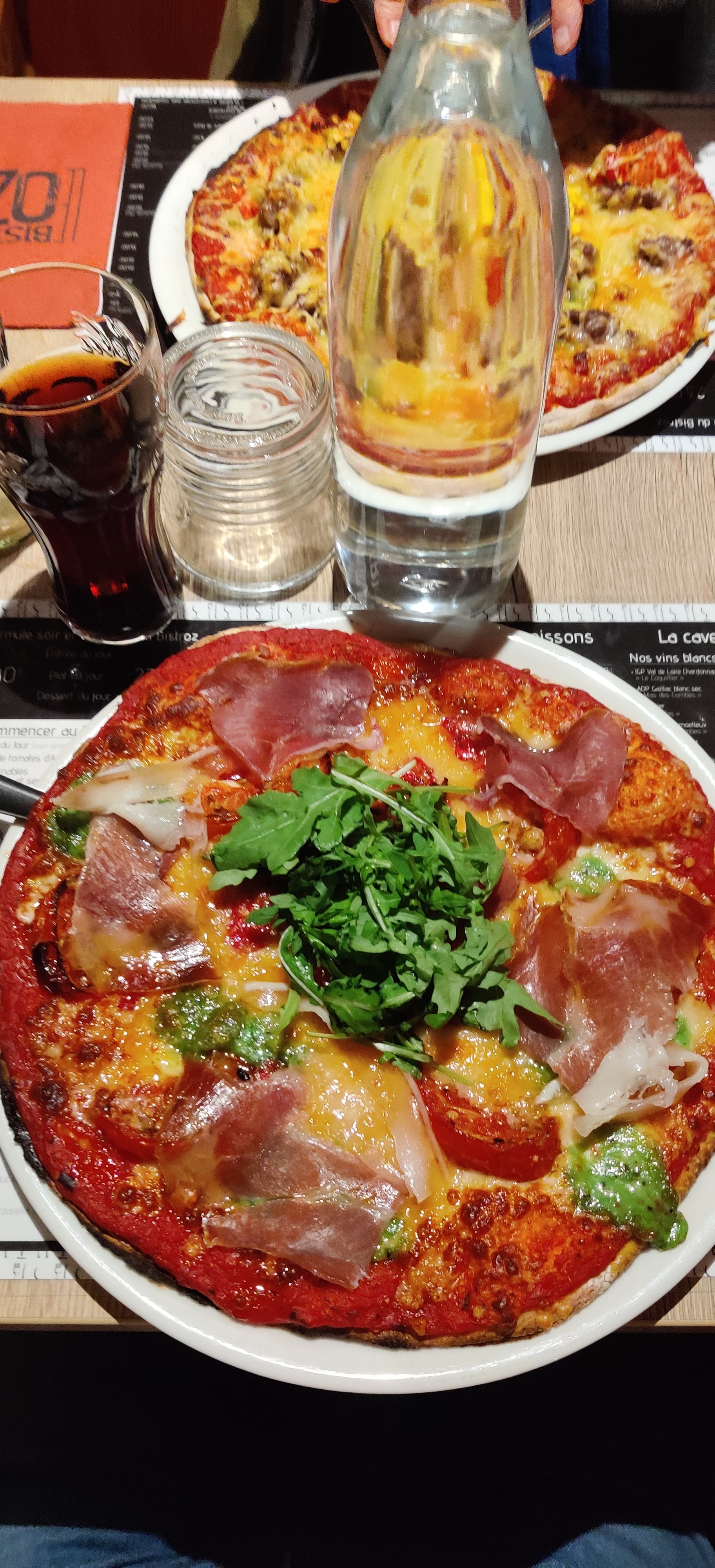 Accueil et serveur tres agréable, en revanche déçu sur mon plat vogiflette des champignons dedans alors que c'était pas mentionner et mon conjoint aussi sur sa pizza, pas appétissante, pas de gout.