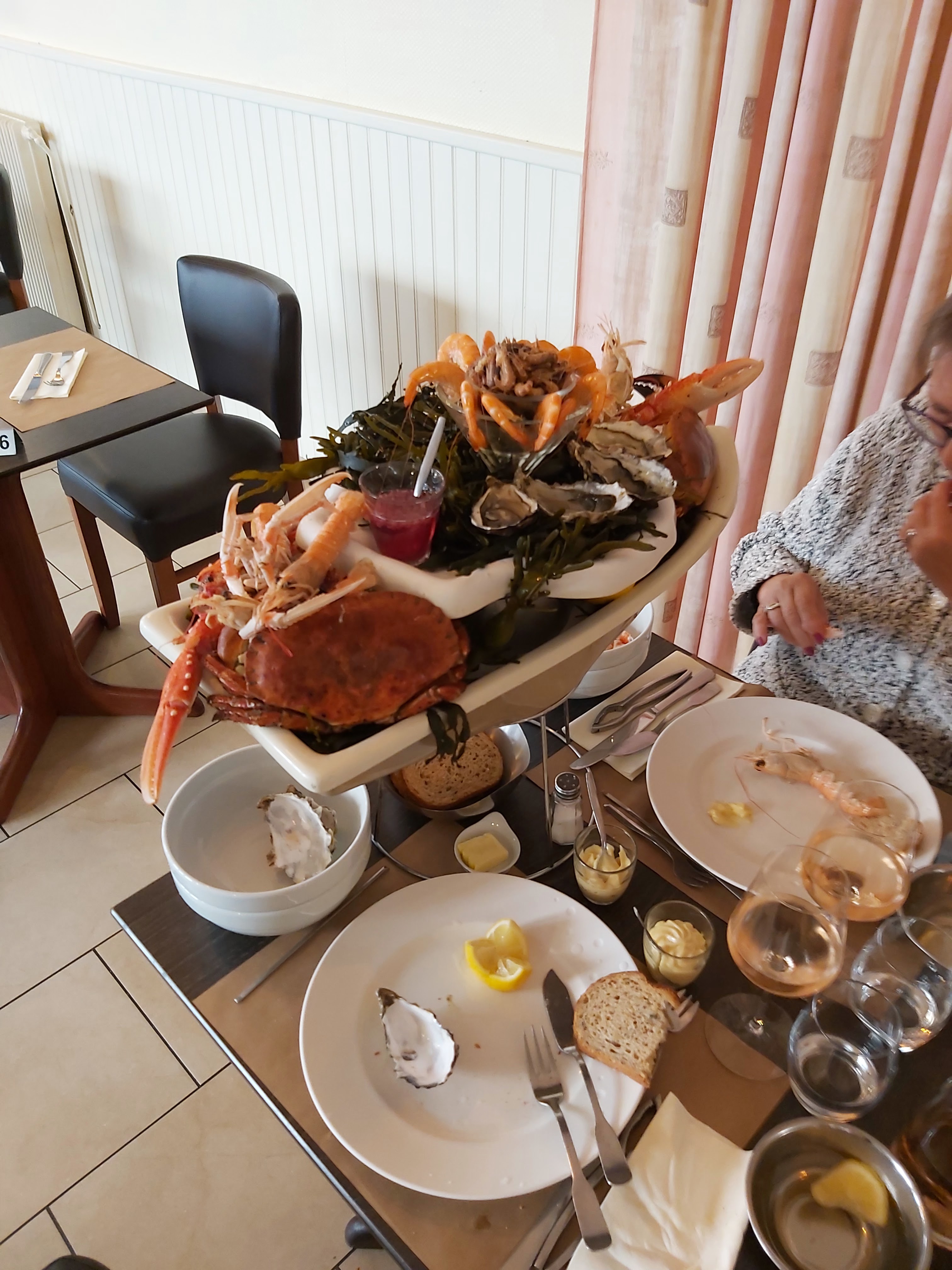 Très mitigée par LE PLATEAU DE FRUITS DE MER ROYAL : la plupart des bigorneaux étaient vides, les crevettes roses très petites, les langoustines trop cuites et sèches… je suis repartie en me disant « bon ça ne valait pas 58€ mais c’était pas mauvais non plus », le personnel était sympathique. Le problème c’est que j’ai tout vomis dans la soirée ! Grosse intoxication alimentaire !! Peut-être les huîtres…