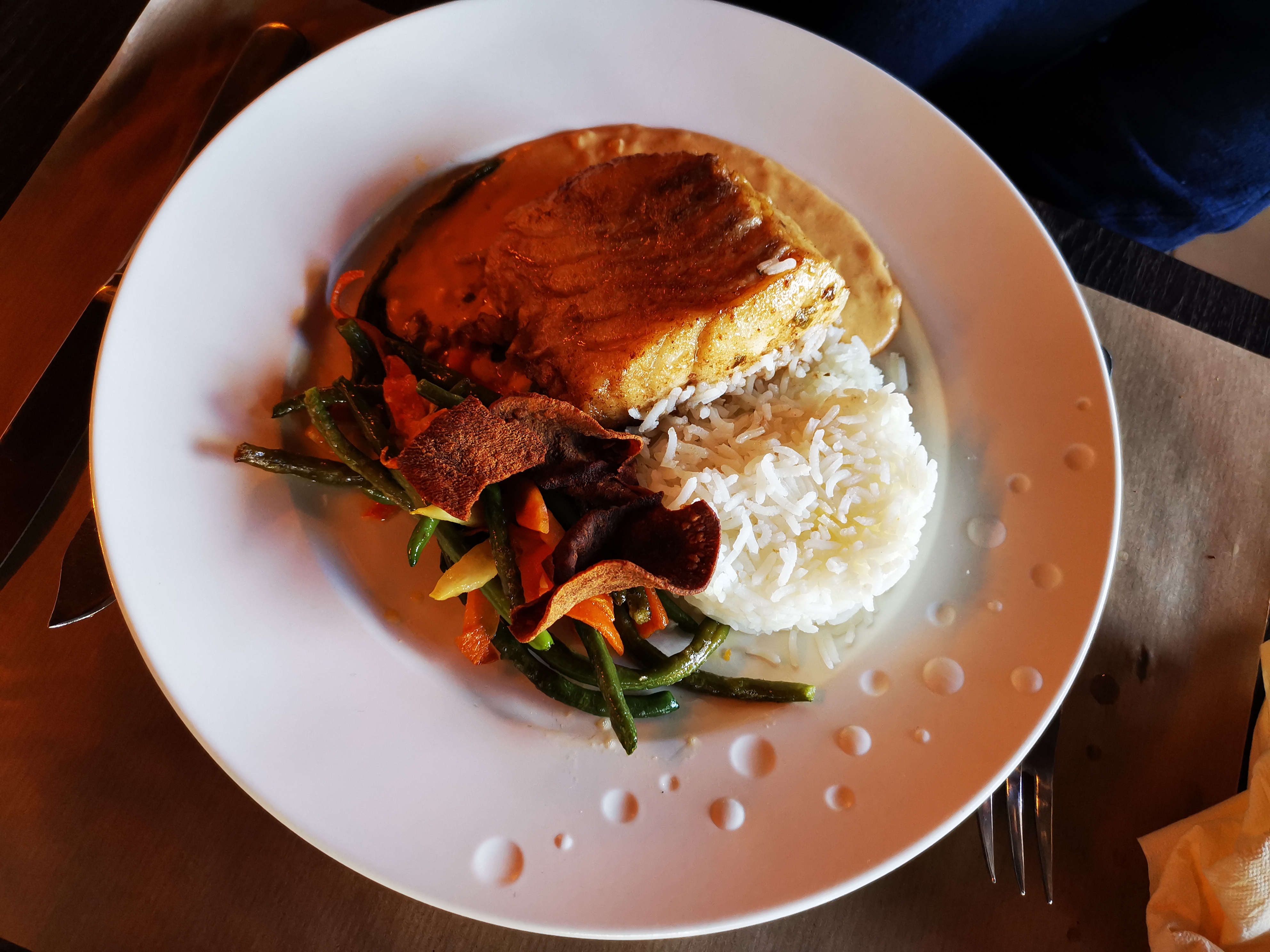 Menu varié , assiette joliment dressé, petit moins pour le riz sec, cadre agréable, Service impeccable