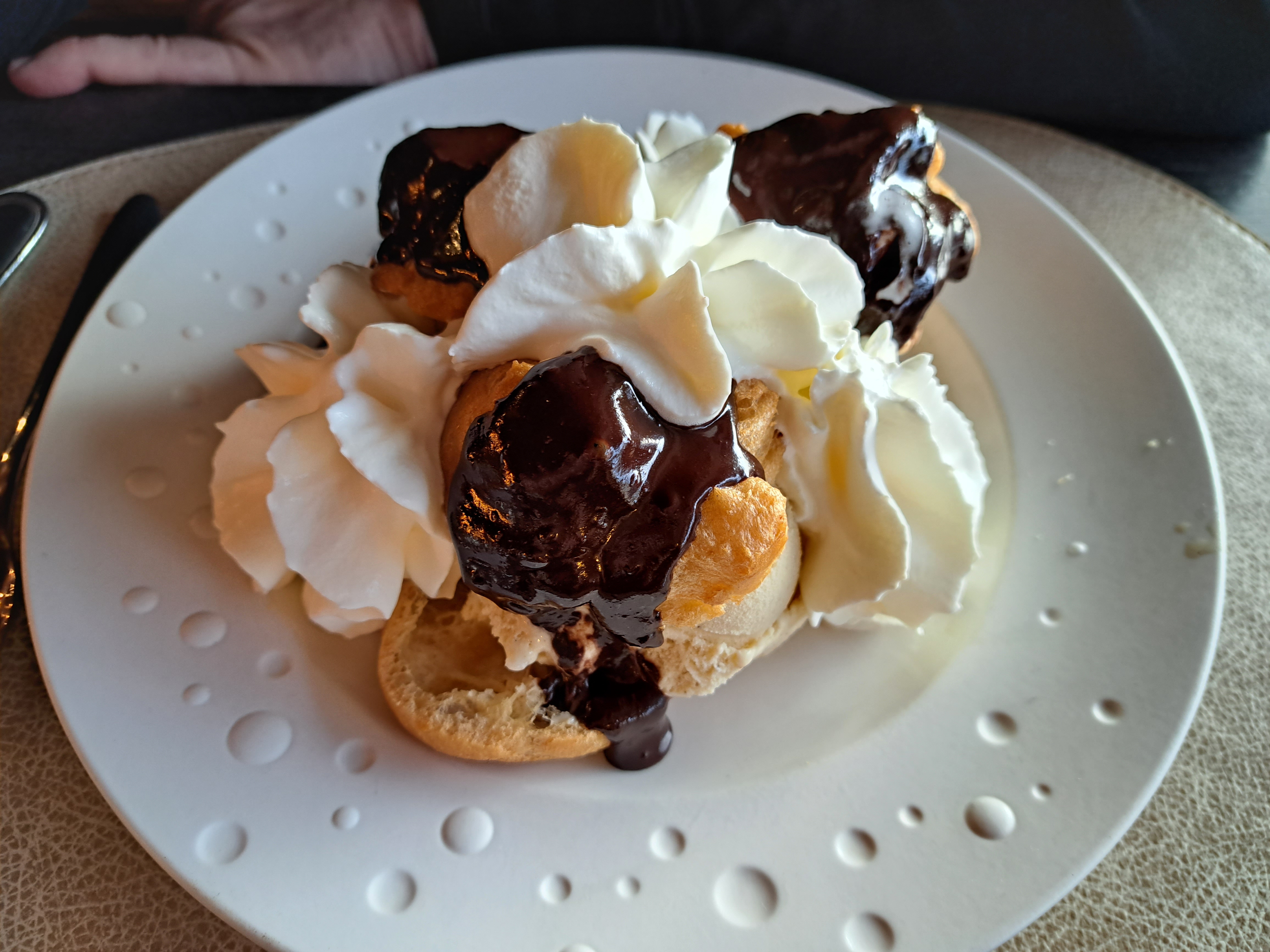 Très bon moment passé avec mon plateau de fruits de mer. Très bon et copieux profiteroles. Service sympathique J’ai hâte de repasser dans le secteur.