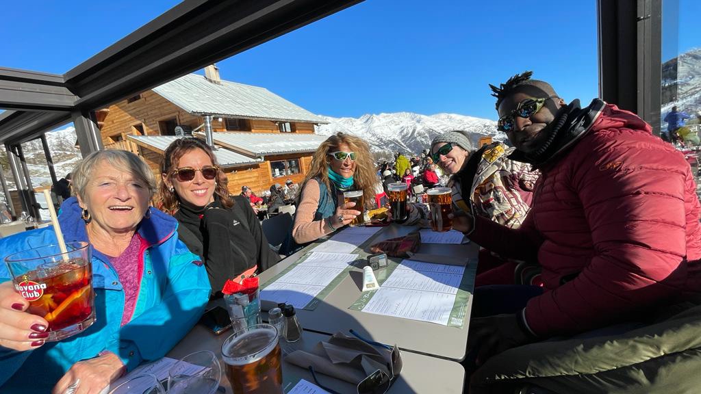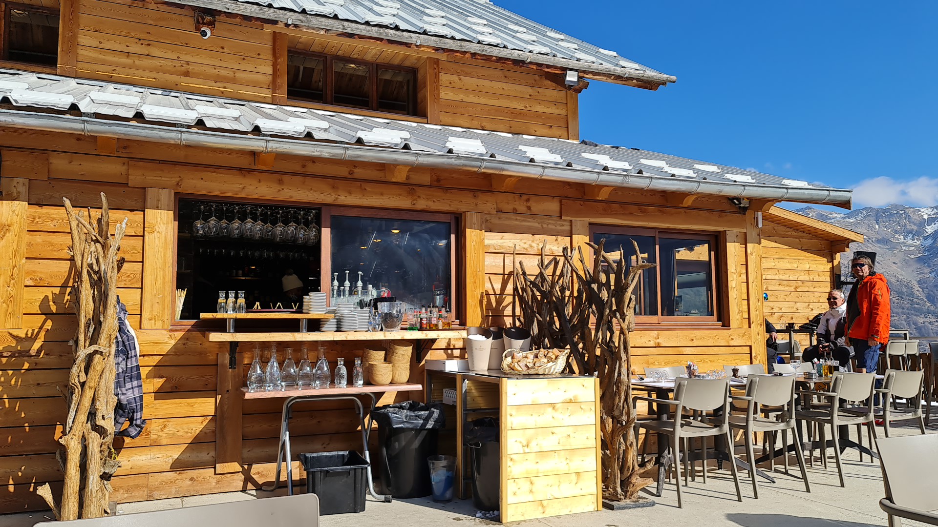 Snack très sympa au pieds des pistes avec le soleil en prime 😊