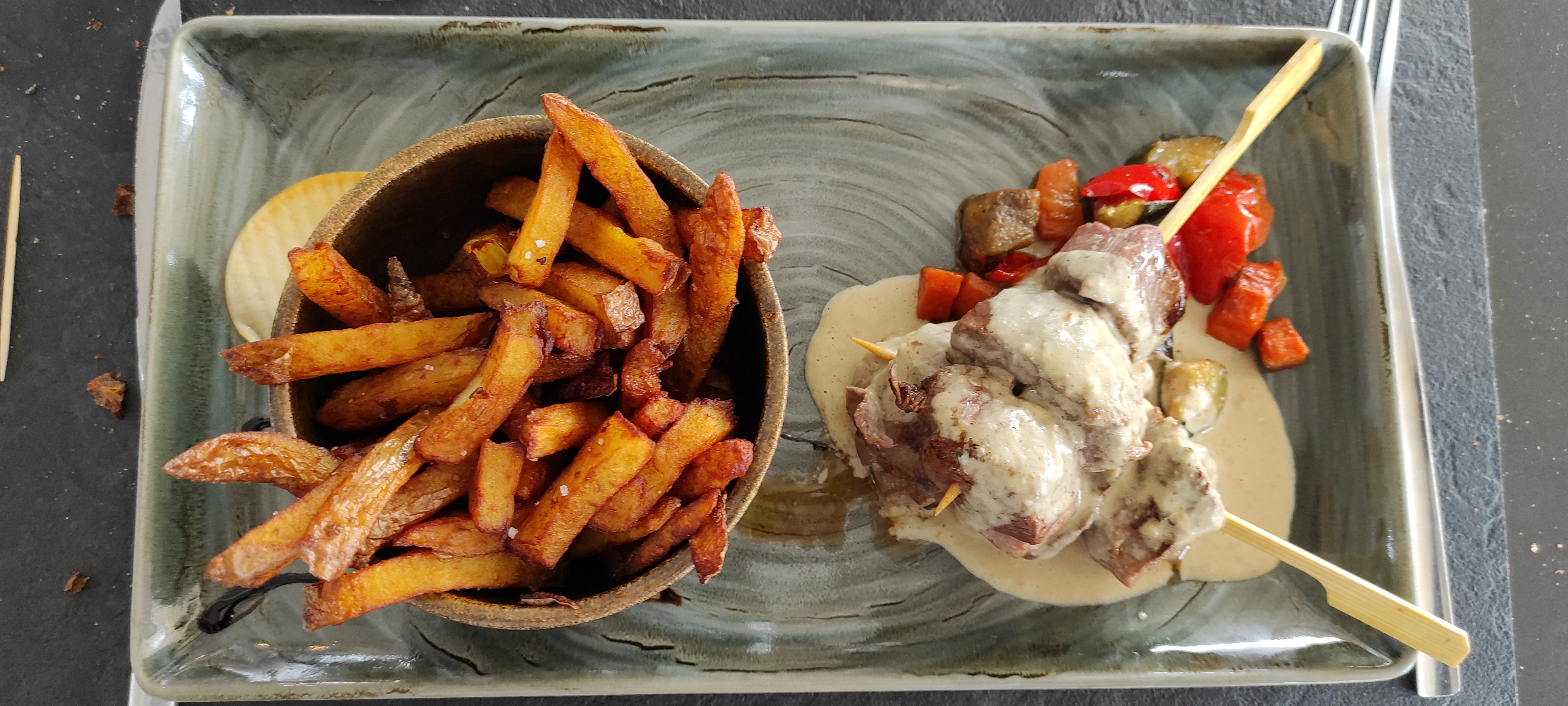 Restaurant choisi pour sa localisation et son nom original, nous avons été très satisfaits du cadre, de la qualité du service. La carte est hyper appétissante pour un tarif raisonnable, la présentation des assiettes est magnifique, et c'était délicieux ! !