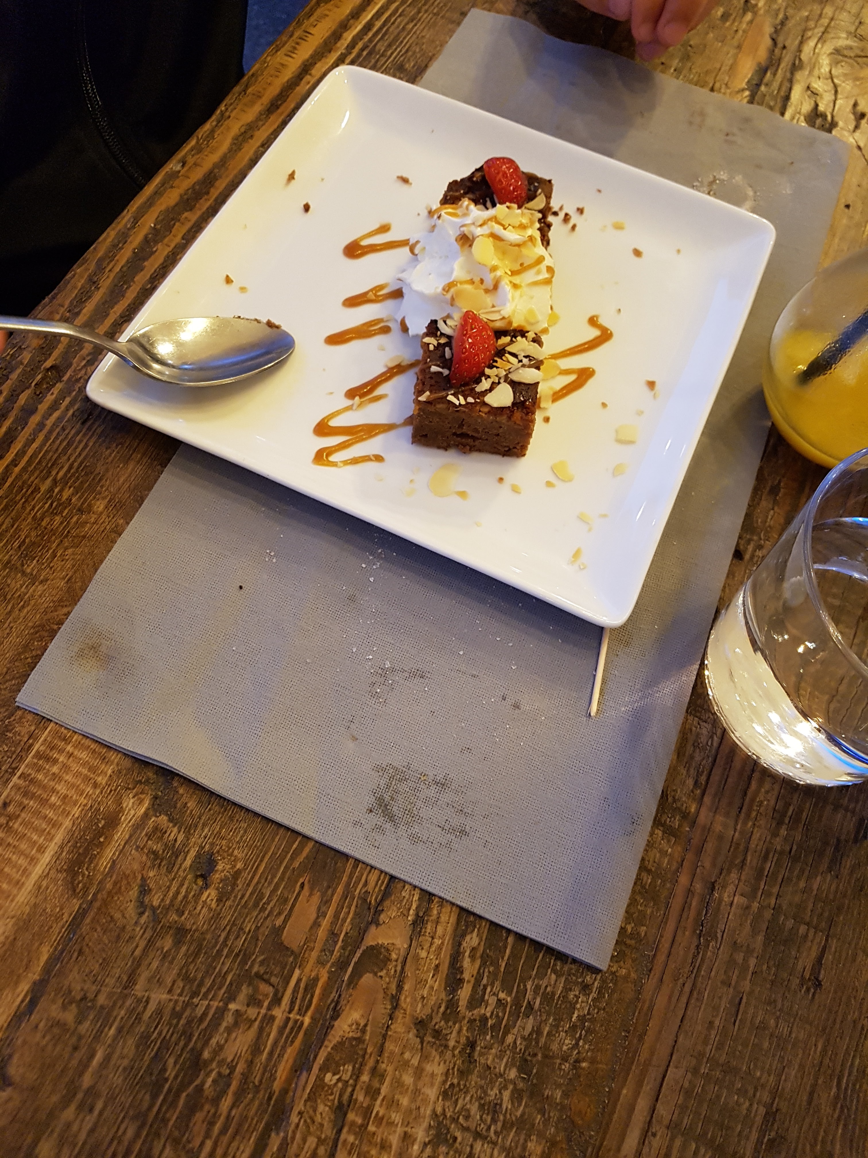 Petits plats excellents. Je me suis régalée avec le merlu rôti et son risotto. Pour le dessert, une chantilly maison aurait été un plus pour accompagner le bon petit browni. Accueil très satisfaisant.