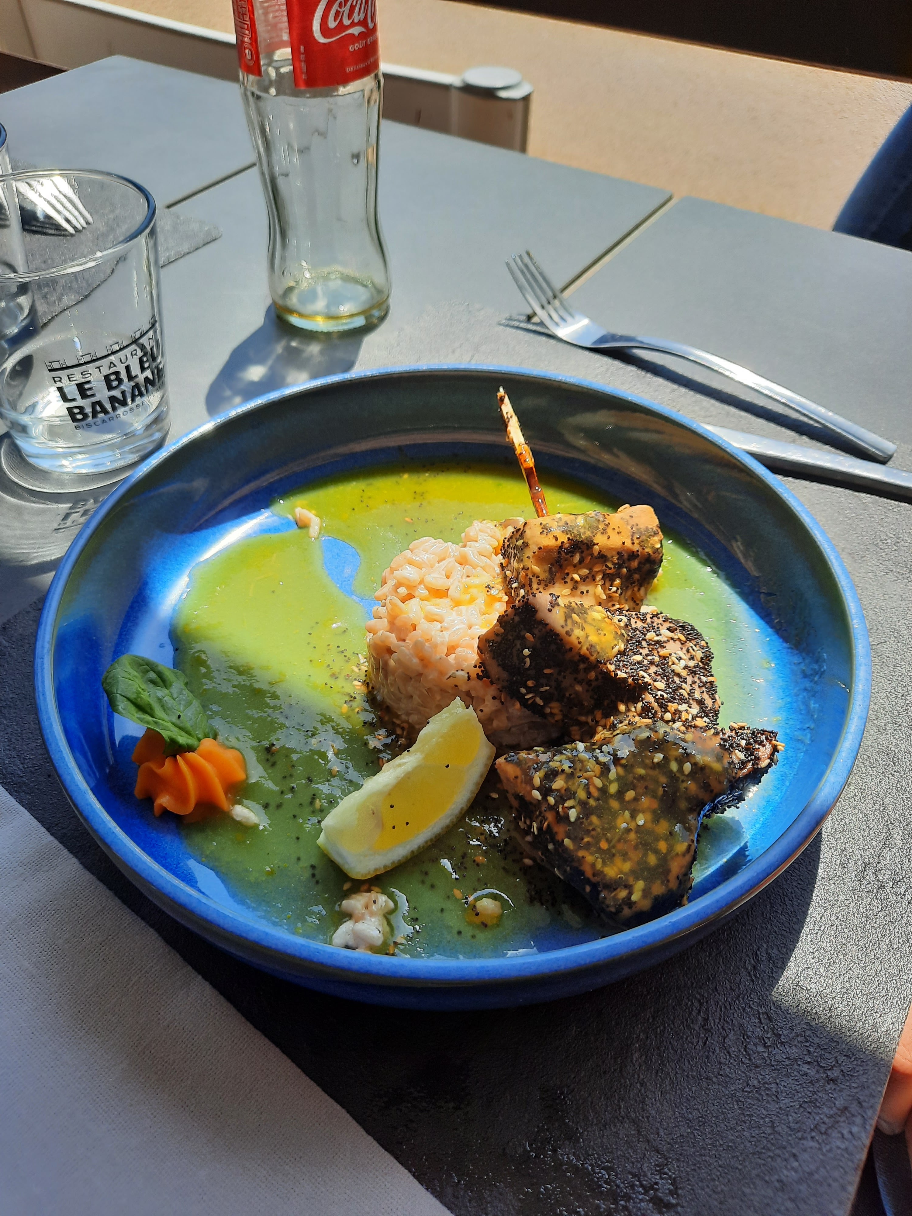 Nous avons très très bien mangés au Bleu Banane. Service au Top. Les assiettes sont généreuses, les prix abordables surtout pour du fais maison. Les cocktails sont très bons également. Nous reviendrons mangé la quand nous serons de retour dans le coin. Menu enfant pas très cher également.