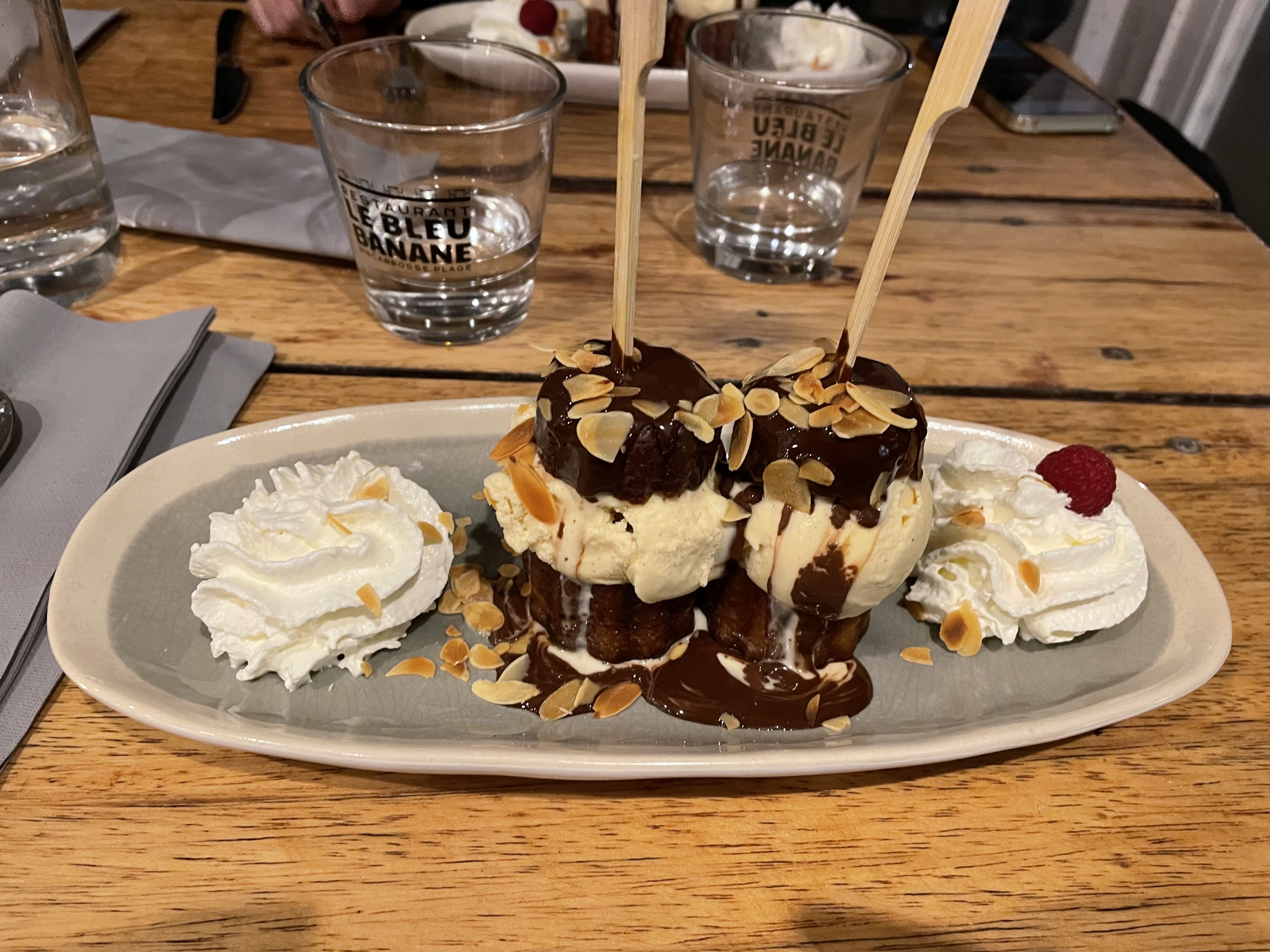 Table de 6, une soirée bonne ambiance. L’entrée au saumon était vraiment bonne. Les pâtes aussi, bien que les portions soit petites quoi. Ça serait bien de choisir la dose qu’on voudrait sans en impacter le prix. La dame blanche était savoureuse pour finir le repas.