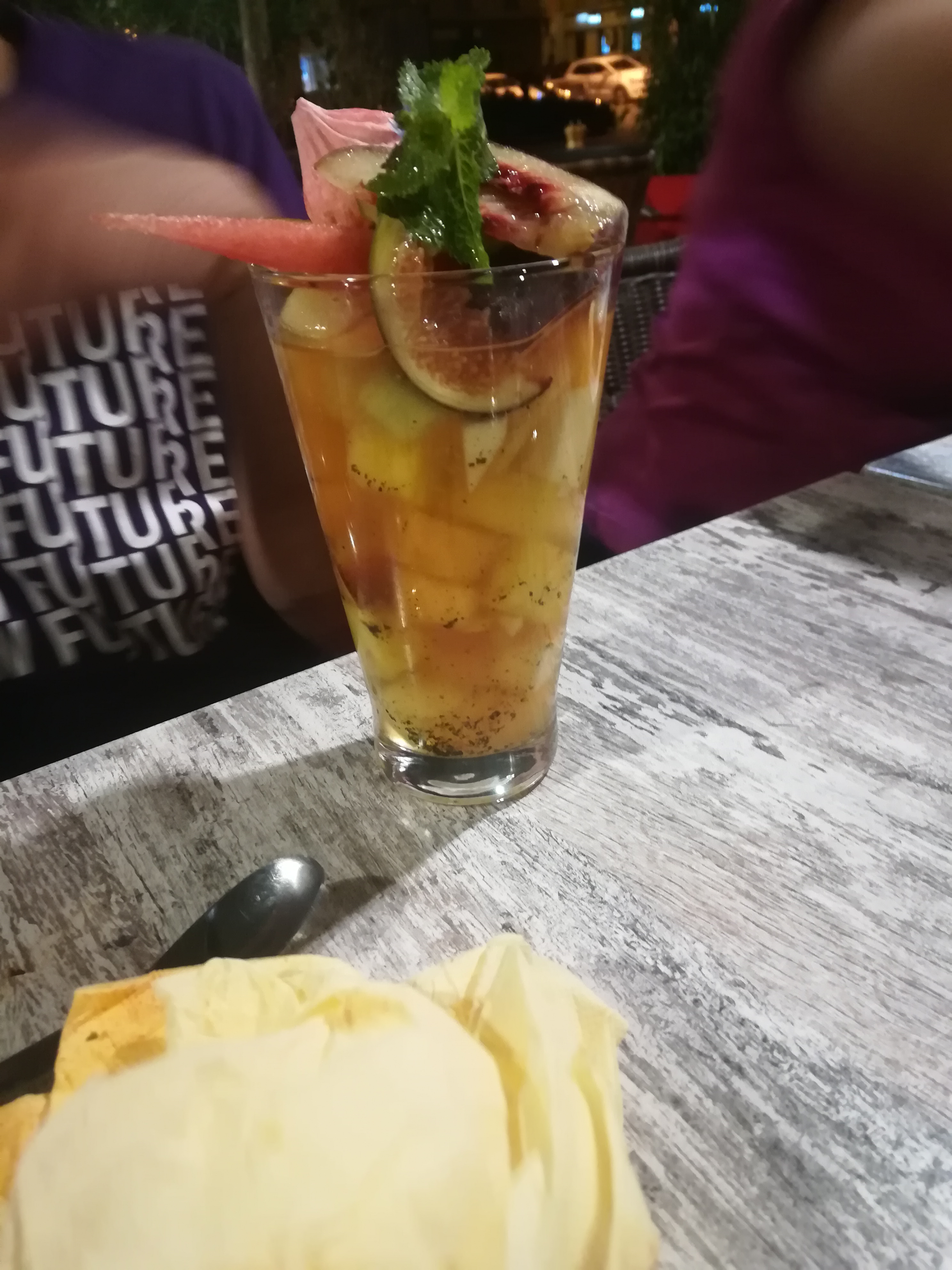 Très bien... tataki de boeuf à l'italienne à tomber...très bonne salade de fruits frais... juste un peu trop chaud en terrasse au soleil, mais plus de place à l'ombre à notre arrivée 😉