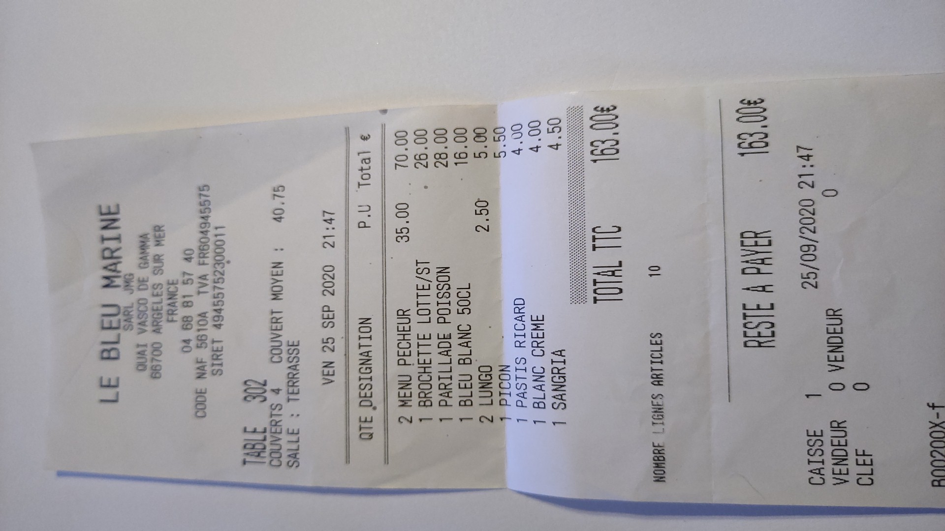 C est la première fois que je viens on voulait un restaurant a base de poisson pour fêter nos 10 ans de couple avec mon mari.franchement c est la.premiere fois que je me suis régalée chapeau au cuisinier les serveurs au top.!!!.je reviendrai dès que j arrive sur Argelès sur Mer c est vraiment esquis.a bientôt je reviens... vivement j ai hâte menu a 34 euros le top.